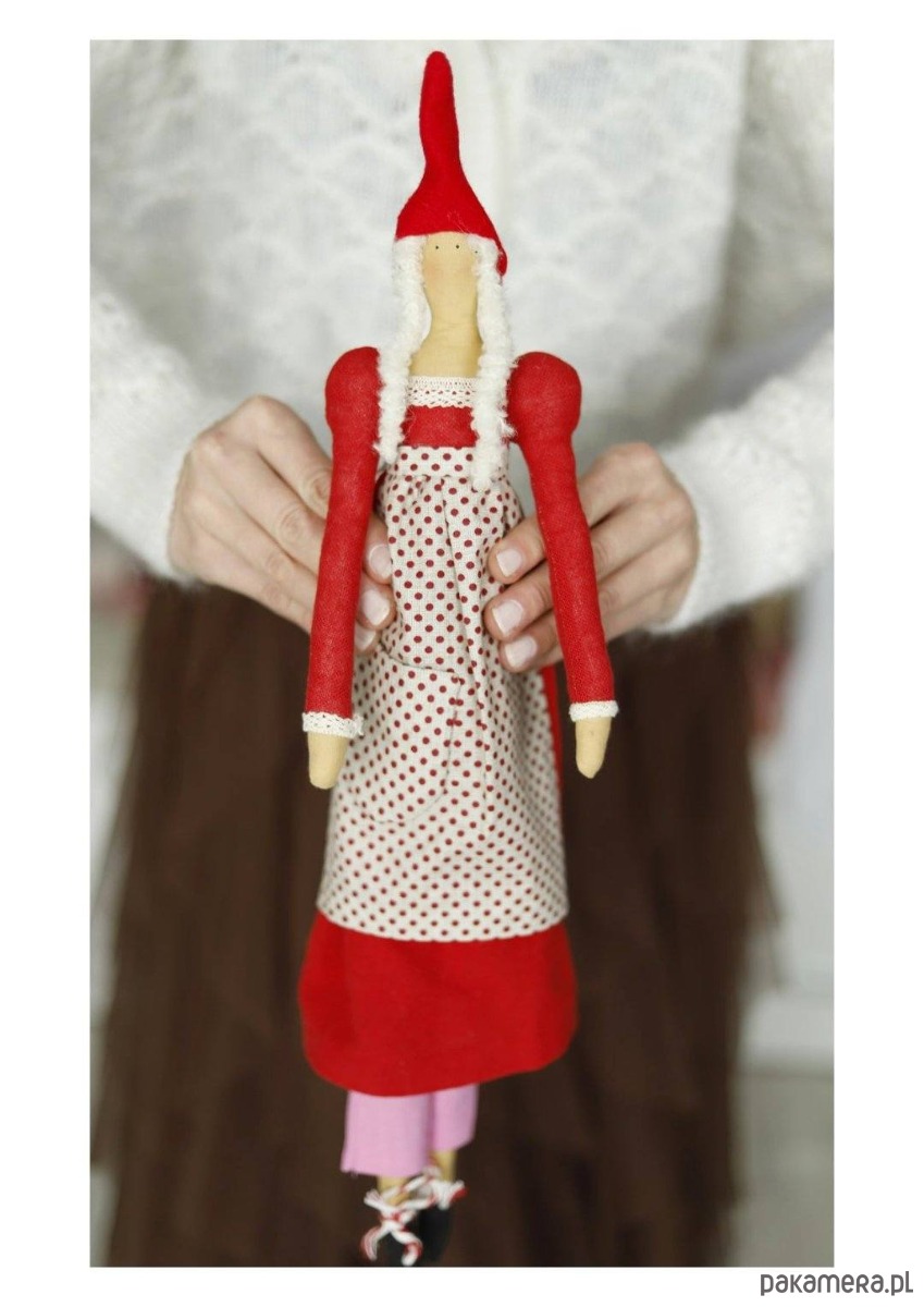 Mikołajkowy skrzat uszyty według projektu Tilda. Wypełnione antyalergiczną owatą.