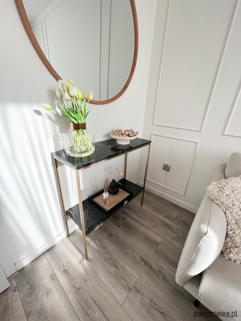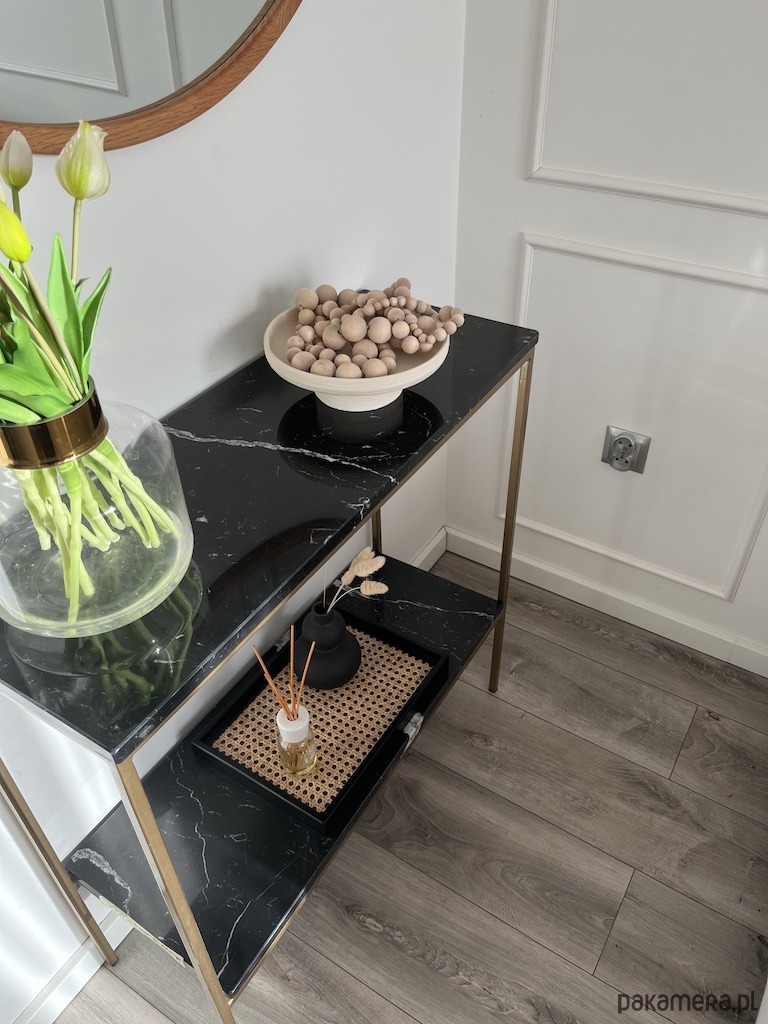 Milano- Złota Konsola, komoda, toaletka, marmur, wąska komoda