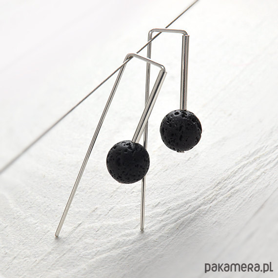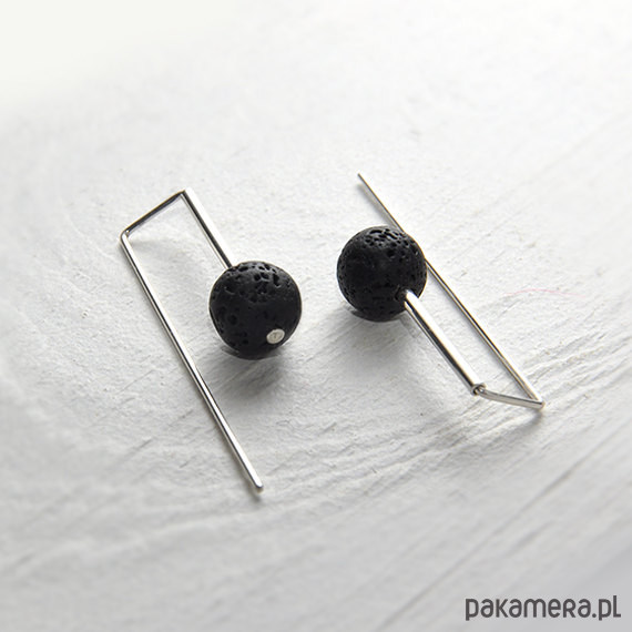 Geometryczne kolczyki wykonane ze srebra i lawy wulkanicznej.