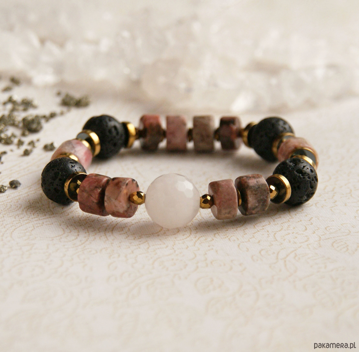 MIŁOŚĆ, ENERGIA - unikatowa bransoleta - kwarc, rodonit, lawa