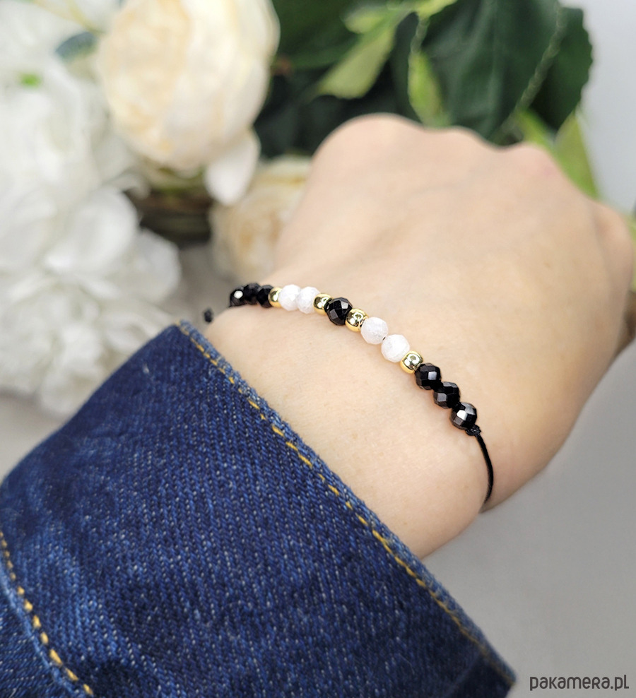 Bransoletka na czarnym sznureczku nylonowym powlekanym - obwód regulowany.