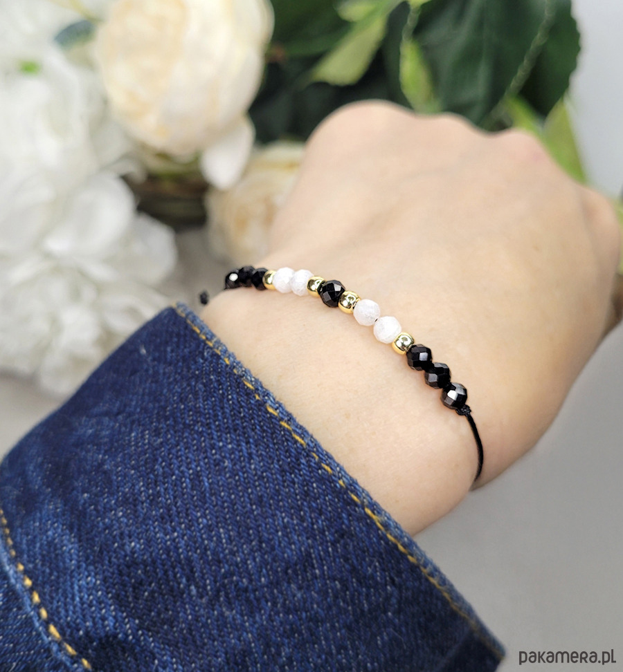 Bransoletka na czarnym sznureczku nylonowym powlekanym - obwód regulowany.