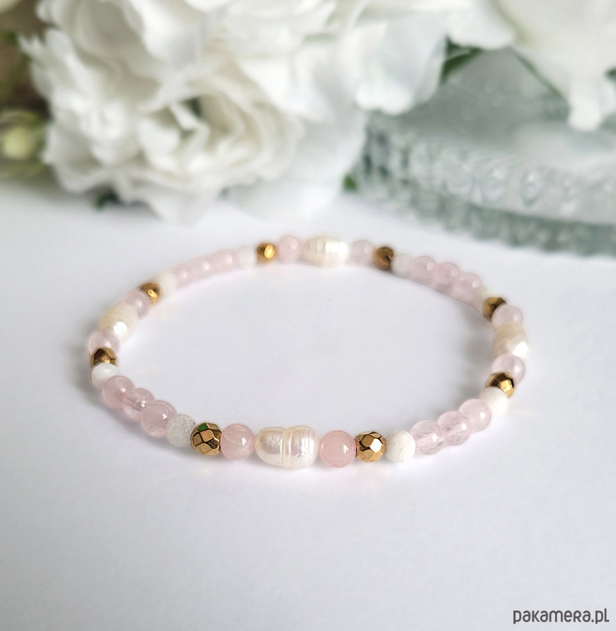 - Rodzaj kamienia: hematyt, kamień księżycowy, kryształ górski, kwarc różowy, perła