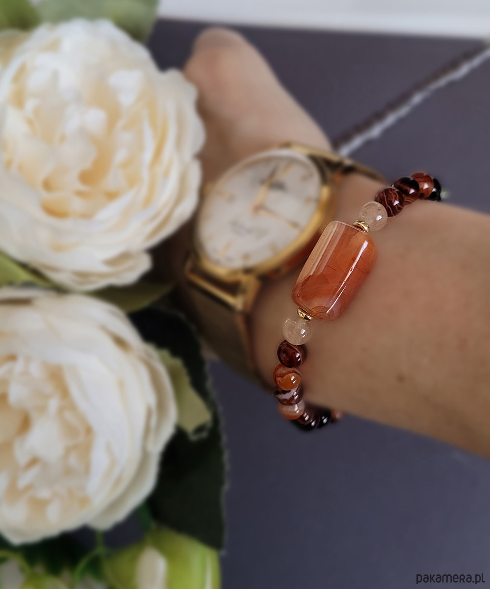 Piękna bransoletka zrobiona z kamieni naturalnych: Agatu oraz Turmalinu jasnego.