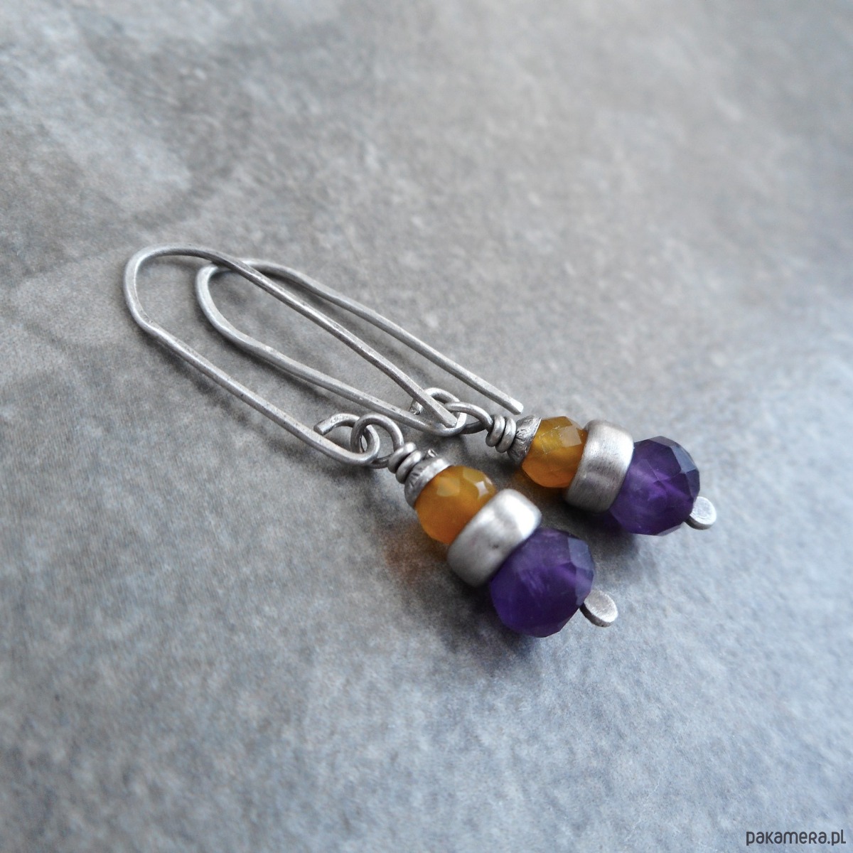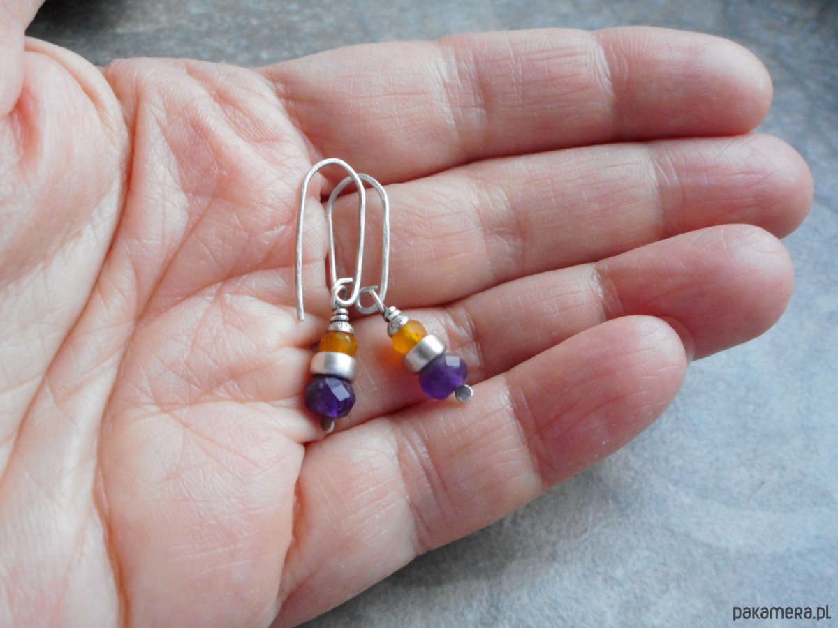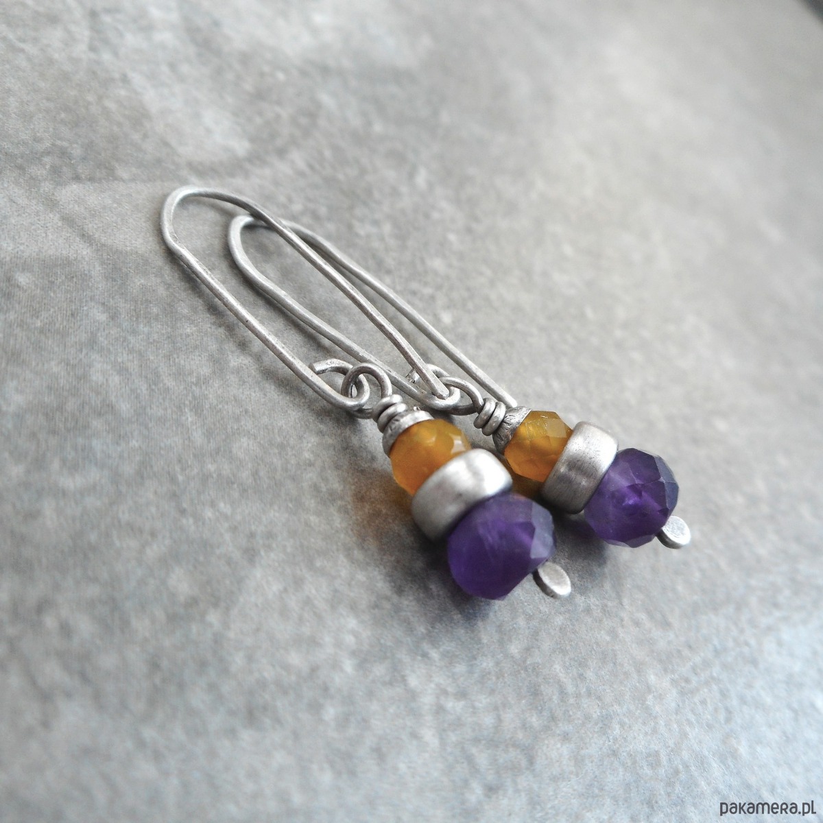 Niewielkie kolczyki z kamieni naturalnych i szlachetnego srebra; lekkie, nie obciążające ucha, drobny akcent do codziennych stylizacji.
