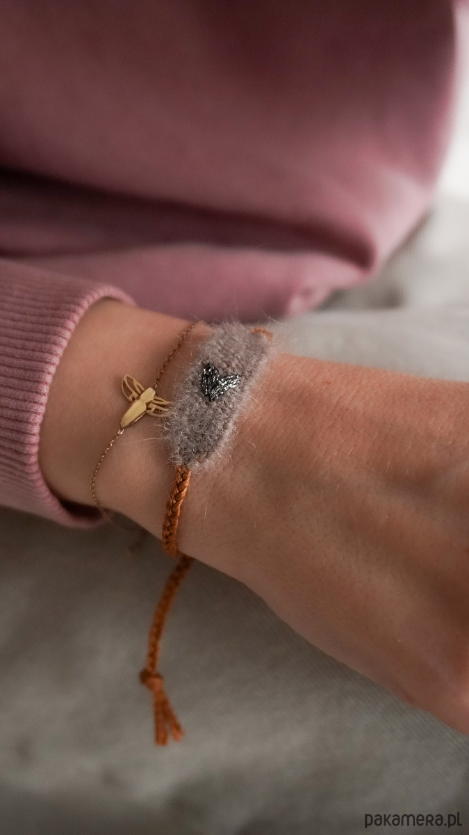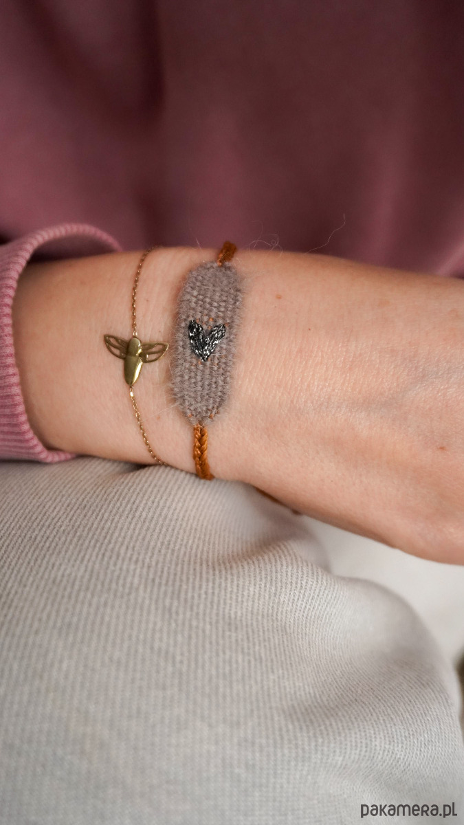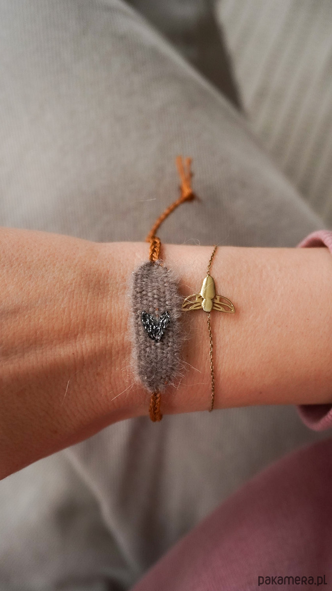 Mini bransoletka ręcznie robiona z haftowanym serduszkiem