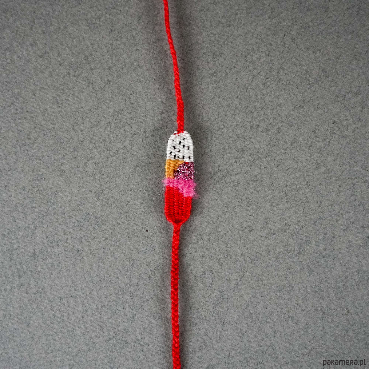 Mini bransoletka, wykonana ręcznie na krośnie w cudownych energetycznych kolorach. Część tkana ma około 3 cm długości, około 1 cm szerokości. Bransoletkę wiążemy samodzielnie, dość mocno na supełek.