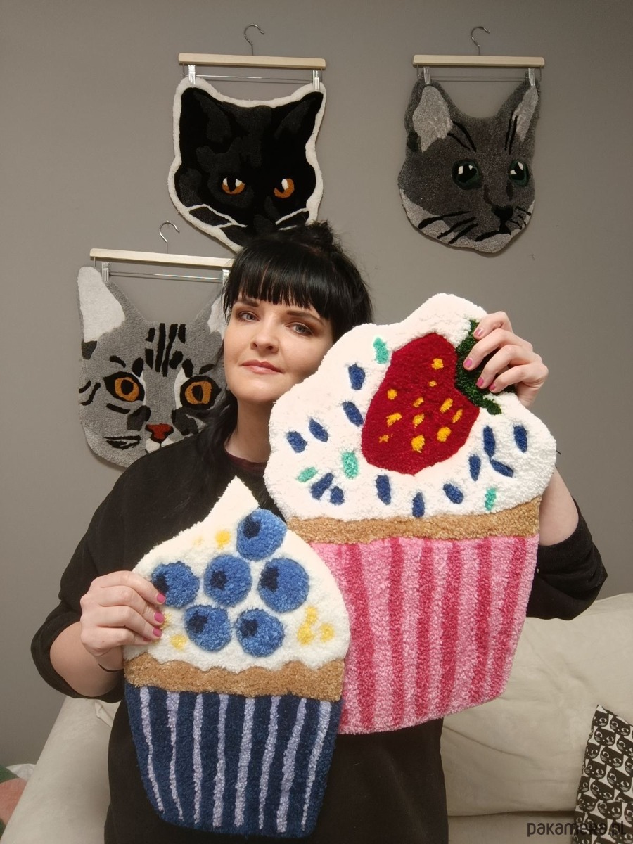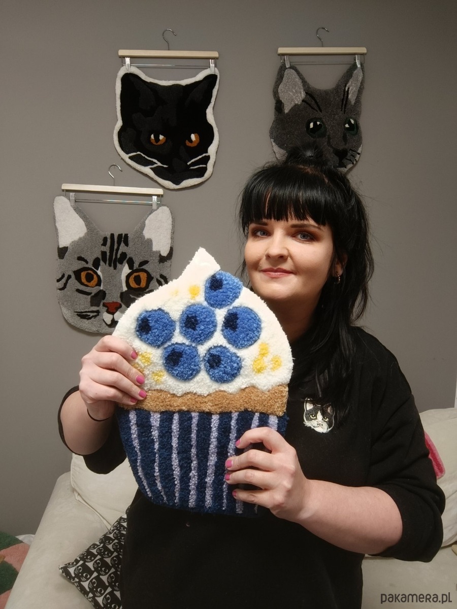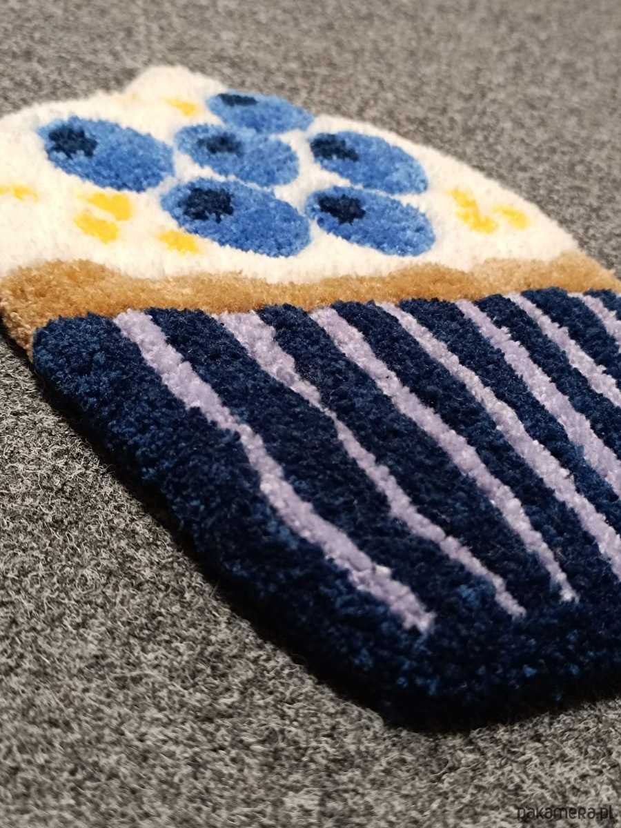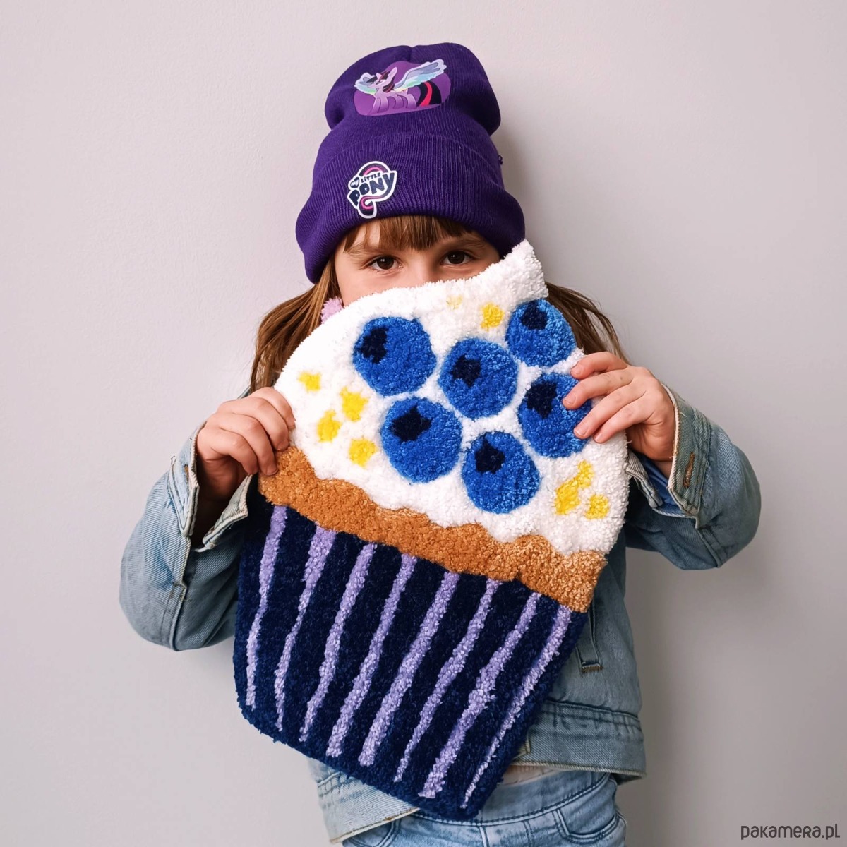 Mini dywan w kształcie babeczki, to urocza ozdoba. Może być umieszczona na ścianie lub na stole czy biurku.
