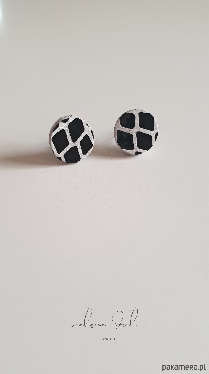 Malutkie, urocze kolczyki w ksztalcie kola. Wykonane z czarnej lakierowanej skory. Ciekawa faktura i wzór w białym kolorze imitujący skórę węża. Lekkie i wygodne. Dodadza uroku i swiezosci. Delikatny a zarazem przykuwający wzrok dodatek do garnituru, sukienki , t-shirtu czy bluzy z kapturem, tylko Twoja wyobraźnia jest limitem .