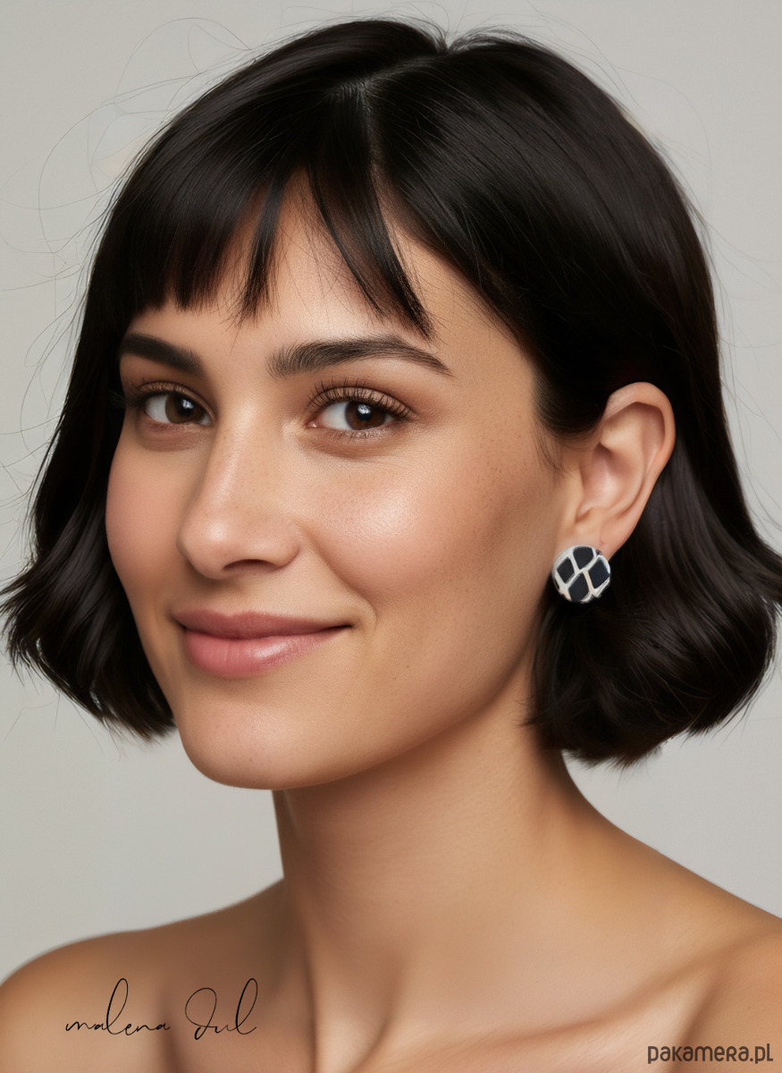 MINI GAJA urocze czarno-białe kolczyki skóra
