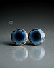 Ceramiczne okrągłe kolczyki w formie sztyftów, ręcznie wykonane z delikatnej gliny kamionkowej jednostronnie szkliwione błękitnym szkliwem z efektem plamek,na antyalergicznych sztyftach w kolorze srebrnym. Średnica ok.6mm. Polecam