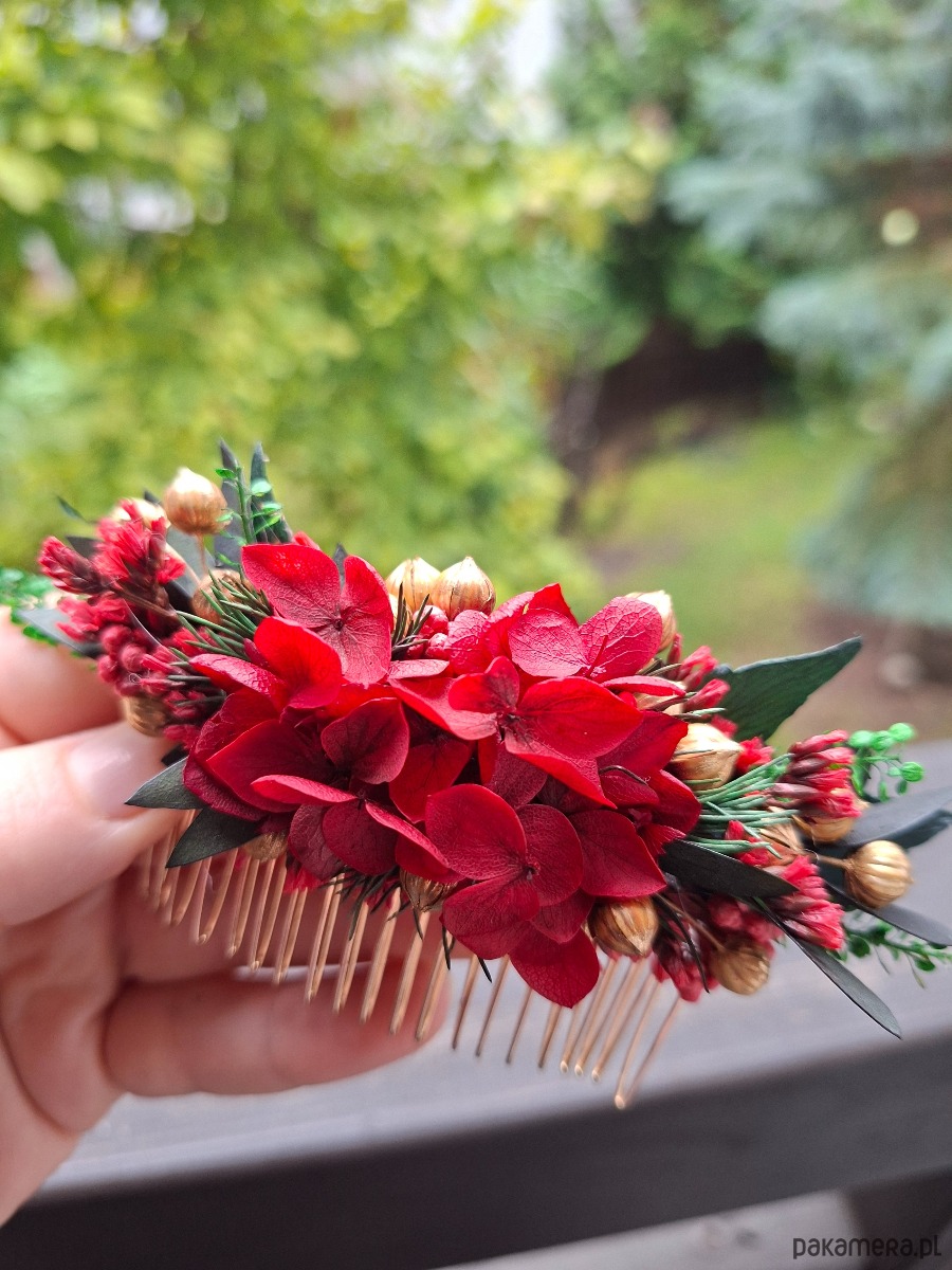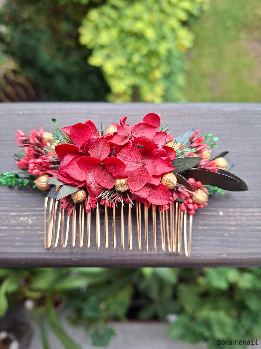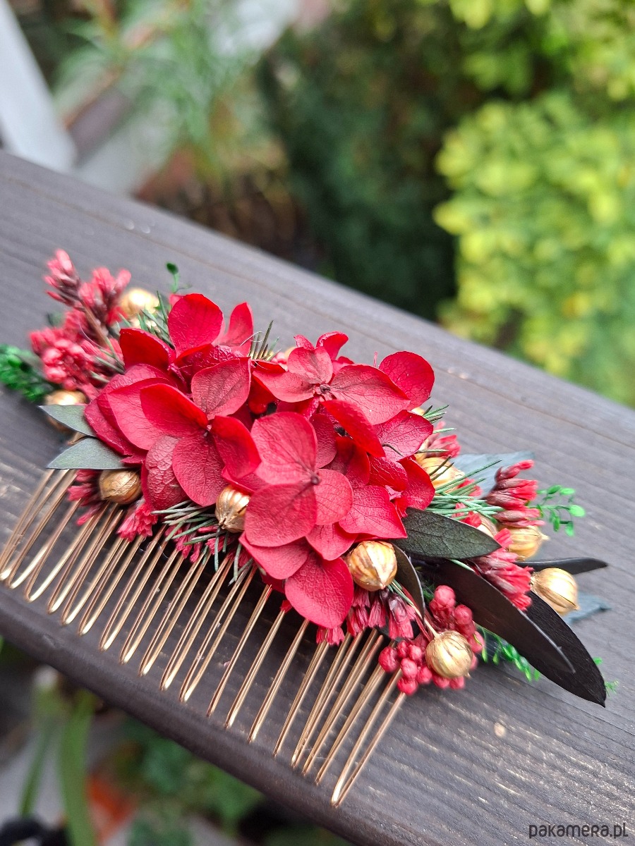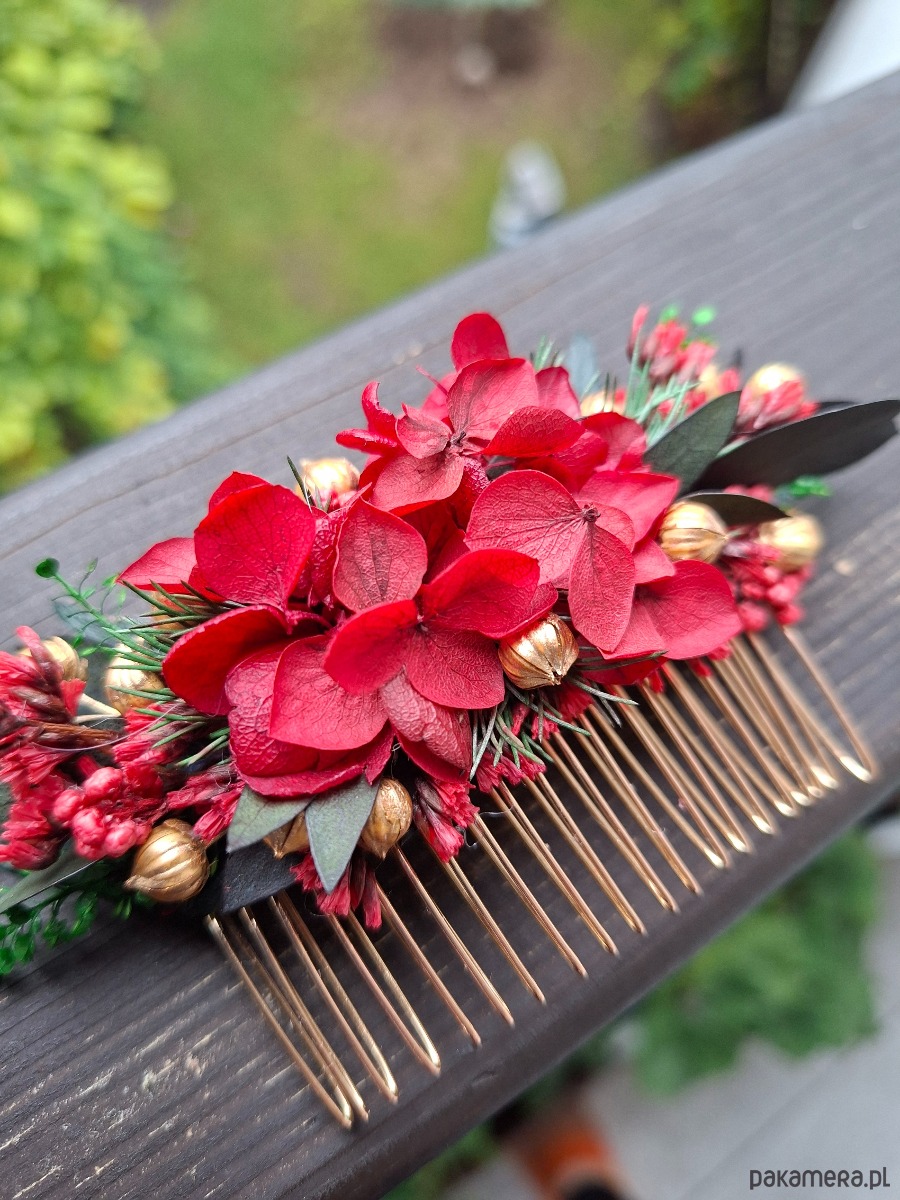 Grzebień do włosów wykonany z suszonych i stabilizowanych kwiatów.
