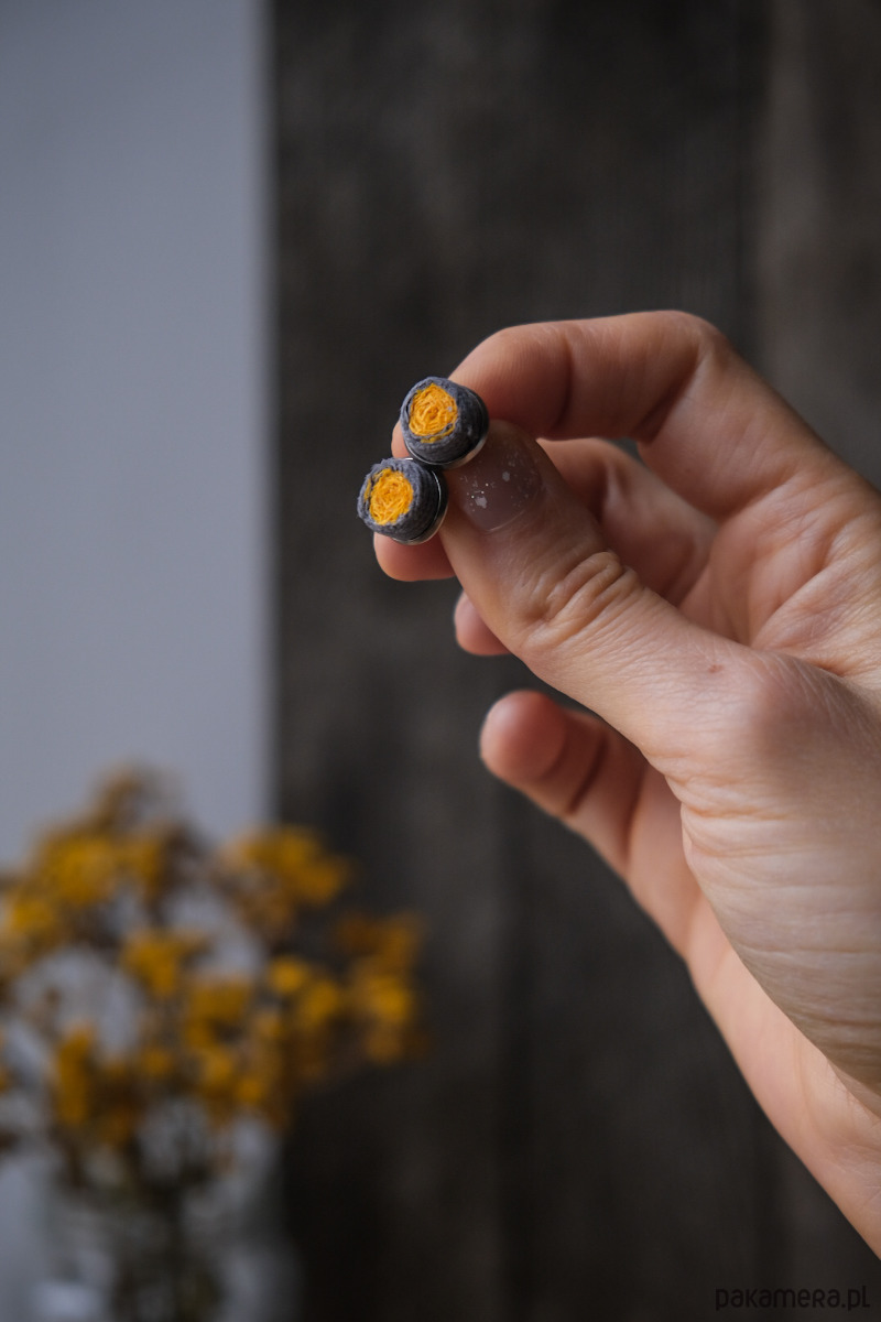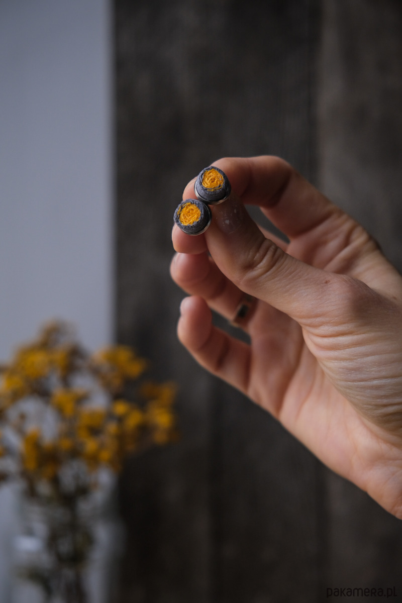 Kolczyki koła, małe kolczyki, kolczyki sztyfty, kolczyki wkrętki, kolczyki kwiaty, żółte kolczyki wkrętki.