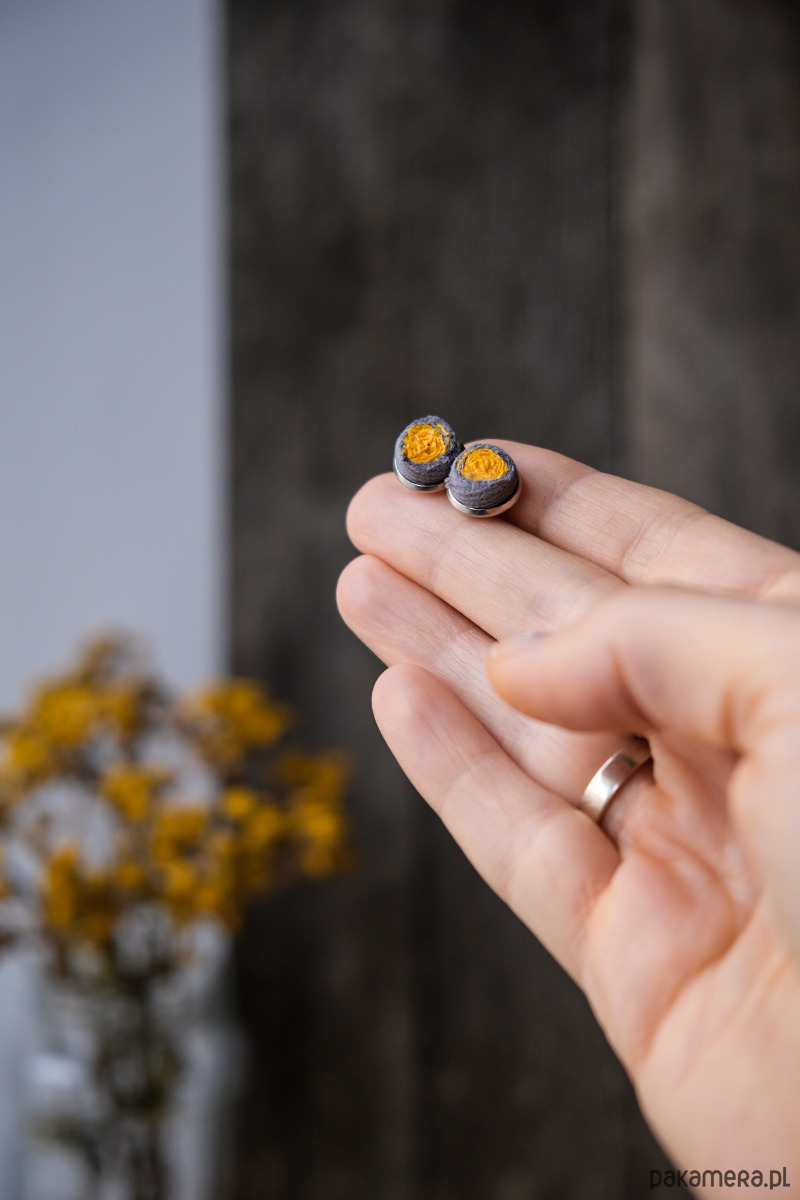 Mini kolczyki kwiaty żółto-szare wkrętki