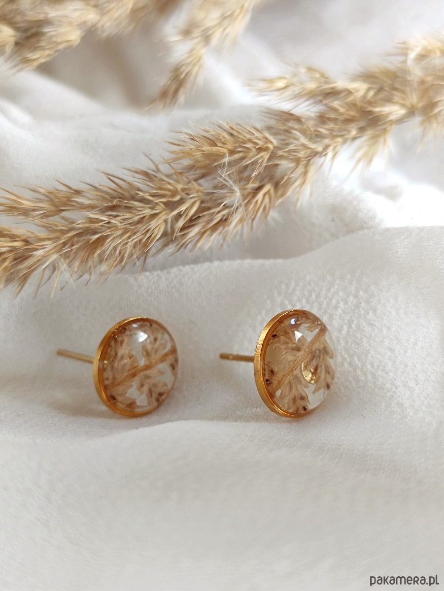 1. Kolczyki z żywicy epoksydowej na sztyftach z pozłacanej stali szlachetnej antyalergicznej