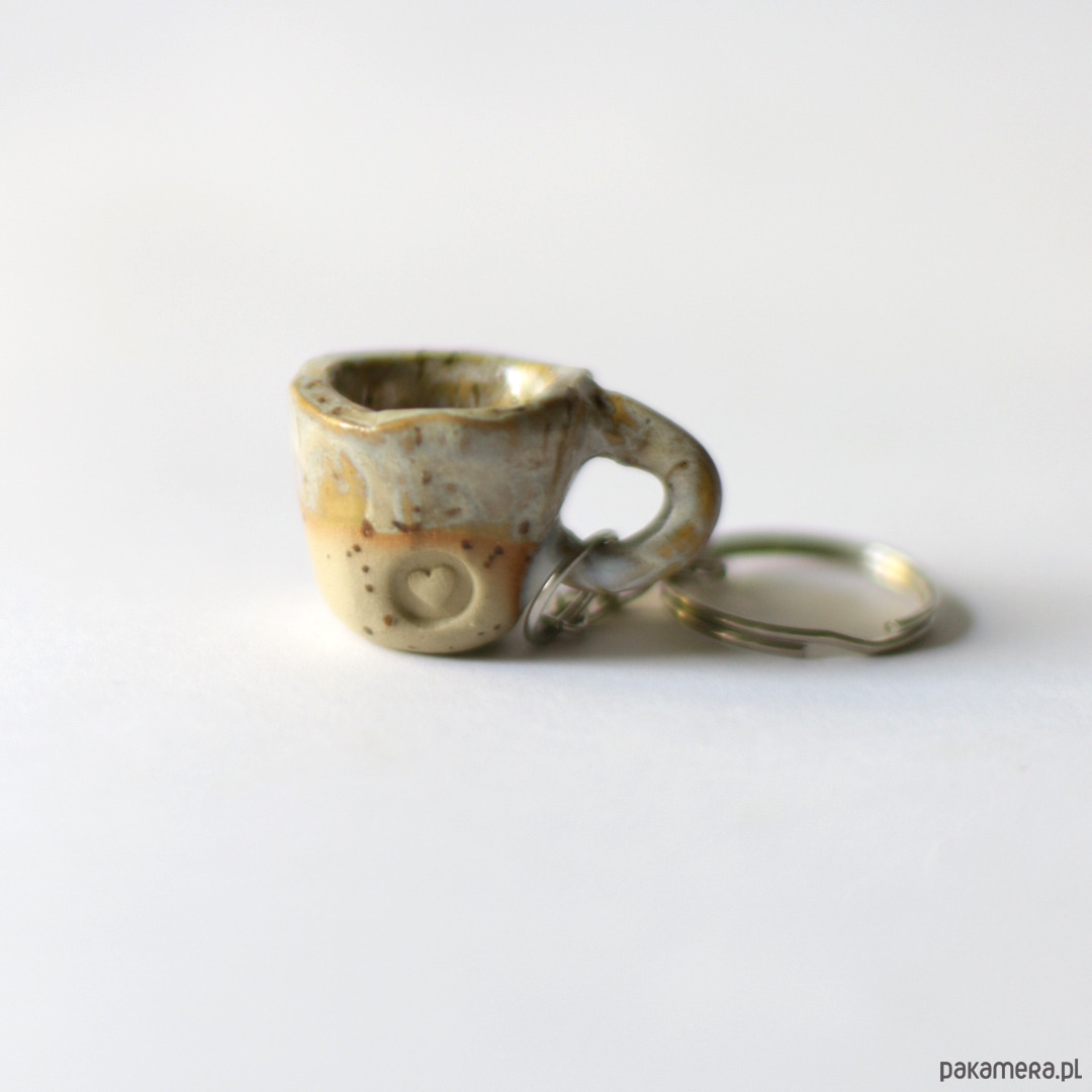 Panie i Panowie, oto najmniejsze kubeczki jakie wyprodukowała moja pracownia!  Ten malutki kubeczek to brelok. Zawieszony na metalowym łańcuszku umożliwi dopięcie go do kluczy czy w innym miejscu.