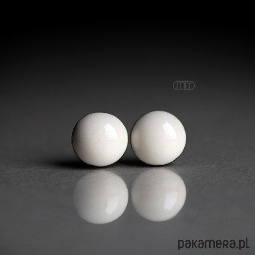 Ceramiczne okrągłe kolczyki w formie sztyftów, ręcznie wykonane z delikatnej czekoladowobrązowej gliny kamionkowej, jednostronnie szkliwione mieszanką jasnokremowych szkliw z efektem plamek, na antyalergicznych sztyftach w kolorze srebrnym. Średnica ok. 6mm. Polecam