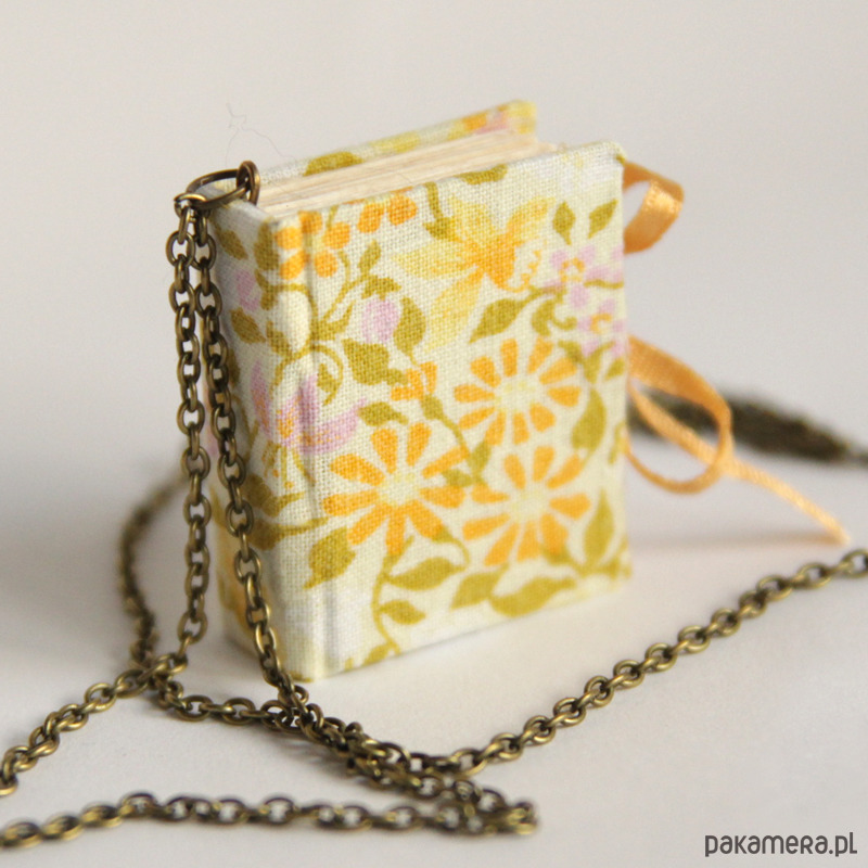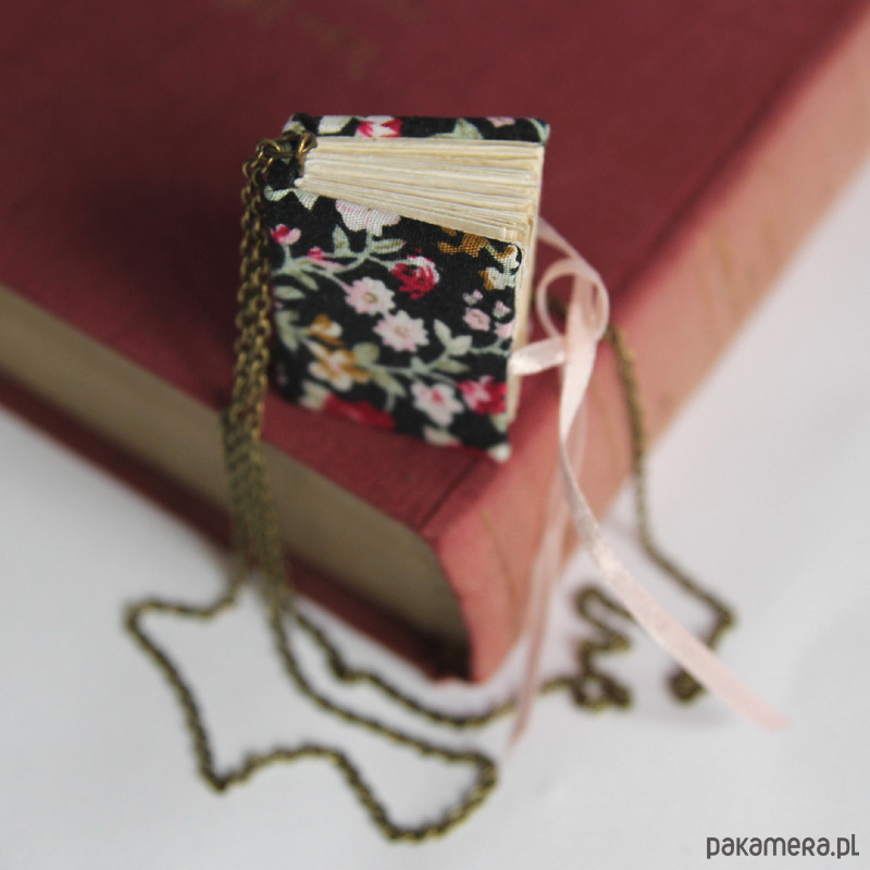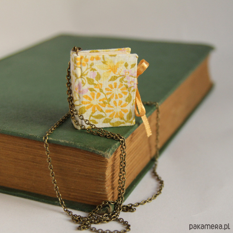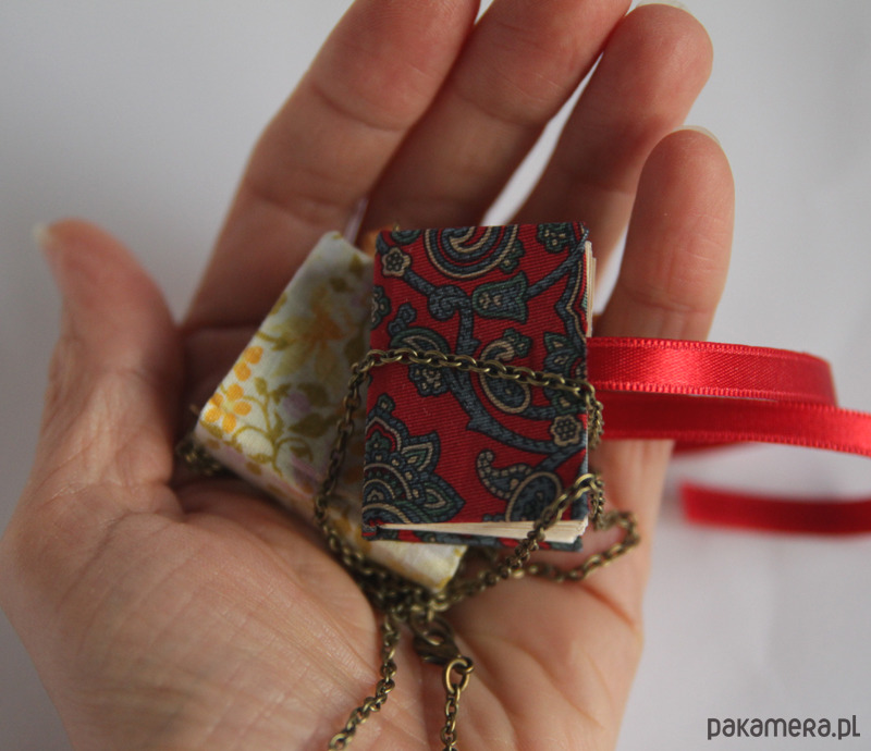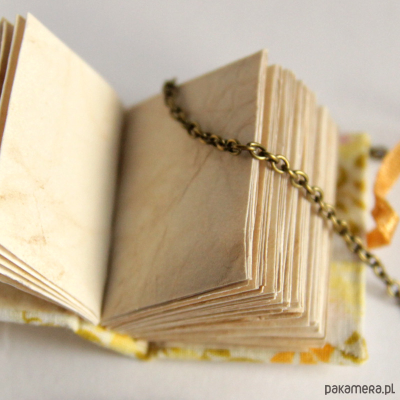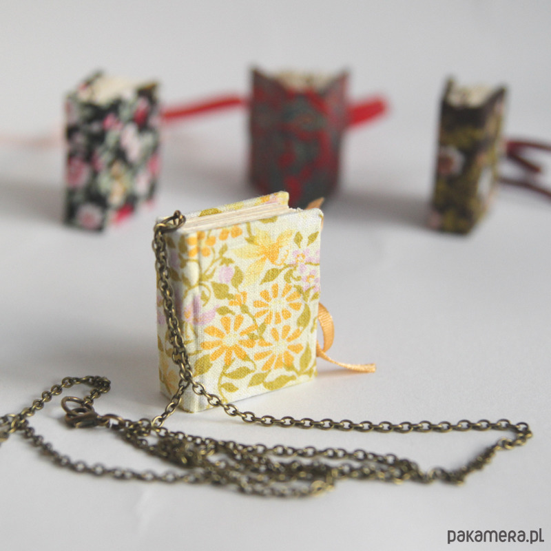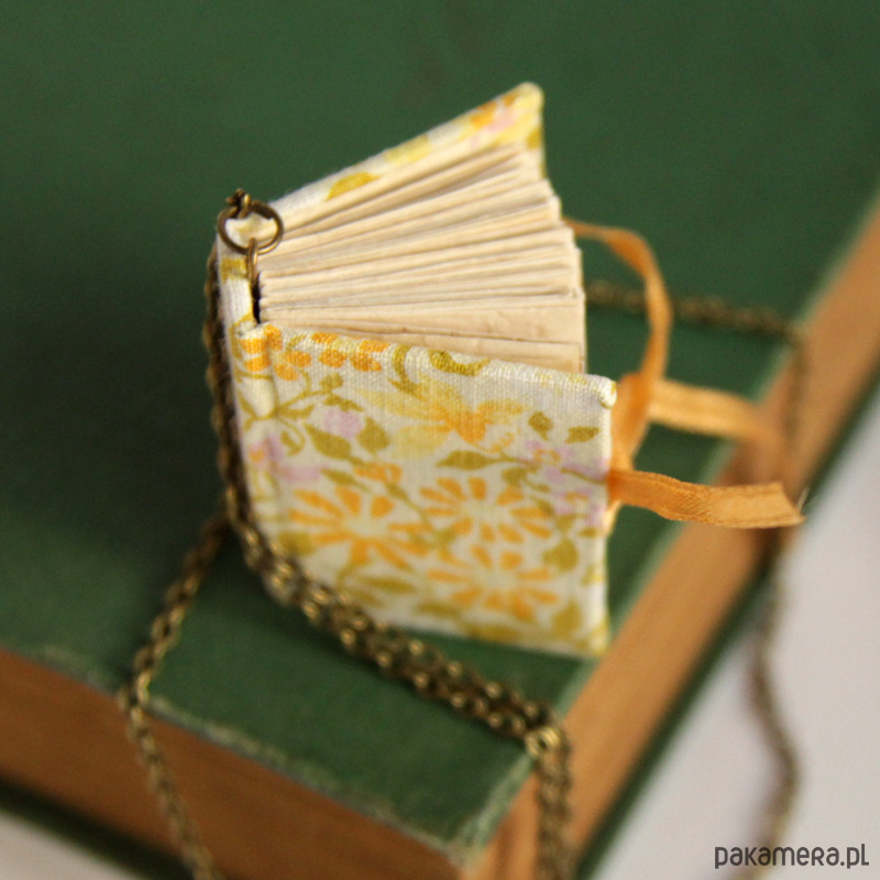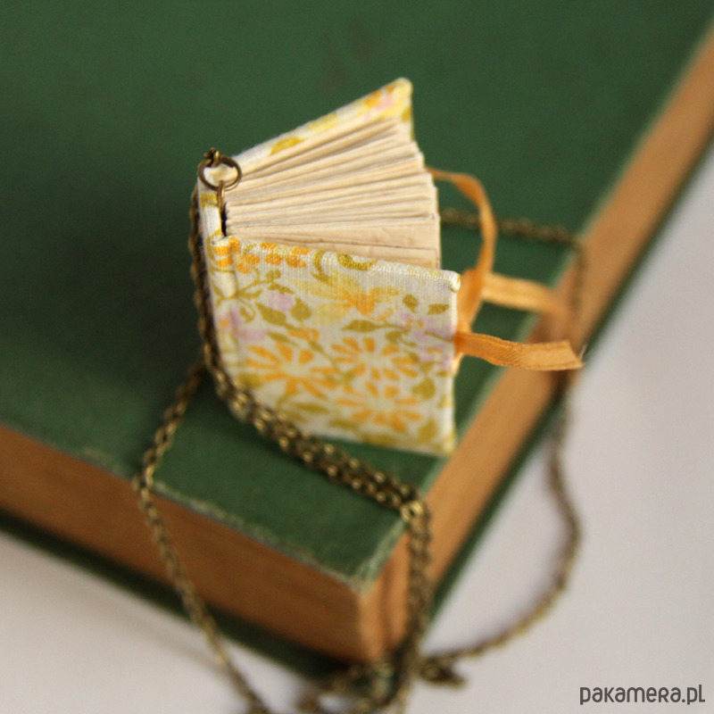 Naszyjnik z malutką książeczką wykonaną ręcznie.