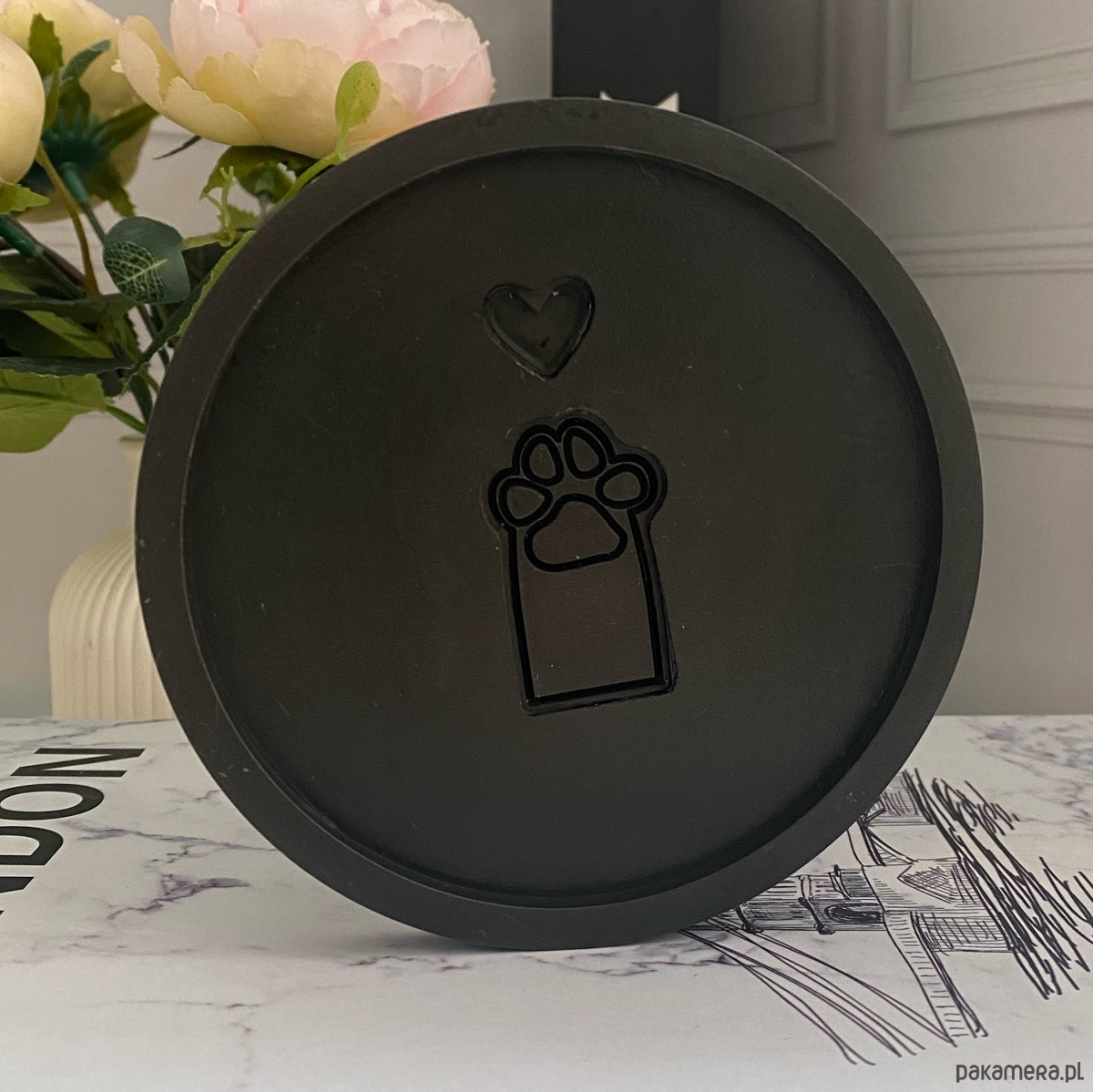 Czarna mini taca na biżuterię z tłoczoną kocią łapką