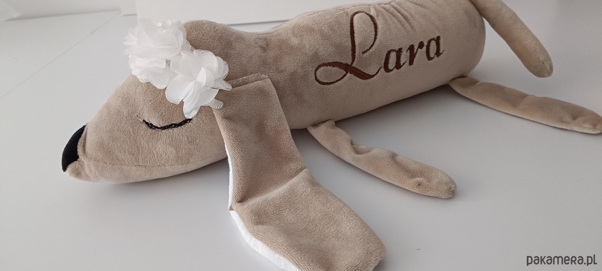 Mini piesek - jamnik -pamiątka narodzin, chrztu haft prezent
