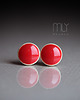 Ceramiczne okrągłe kolczyki w formie sztyftów, ręcznie wykonane z delikatnej gliny kamionkowej, jednostronnie szkliwione intensywnym czerwonym szkliwem z efektem plamek i pięknym połyskiem, na antyalergicznych sztyftach w kolorze srebrnym.Średnica ok. 6mm.. Polecam