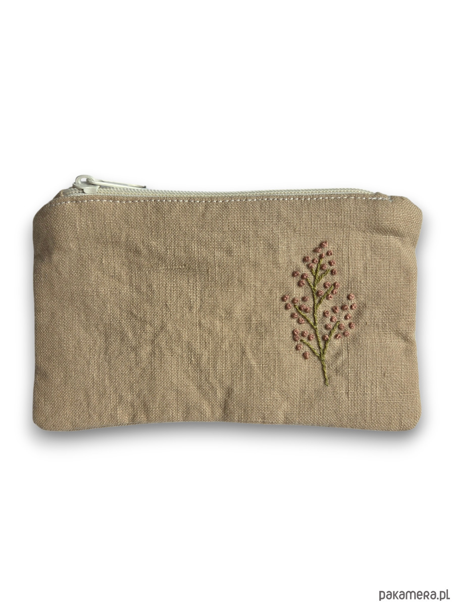Ta mini saszetka z ręcznie haftowanymi wzorami powstała z myślą o drobiazgach, które warto mieć pod ręką. Może służyć do przechowywania kart, dokumentów, leków, a także sprawdzi się jako mały portfelik.