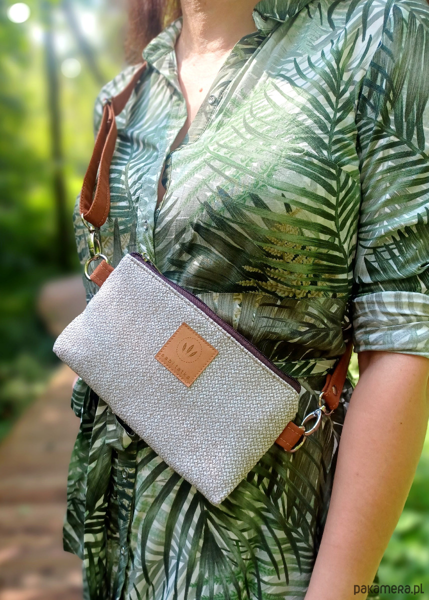 Funkcjonalną mini nerkę na telefon można nosić tradycyjnie na biodrze lub na skos.