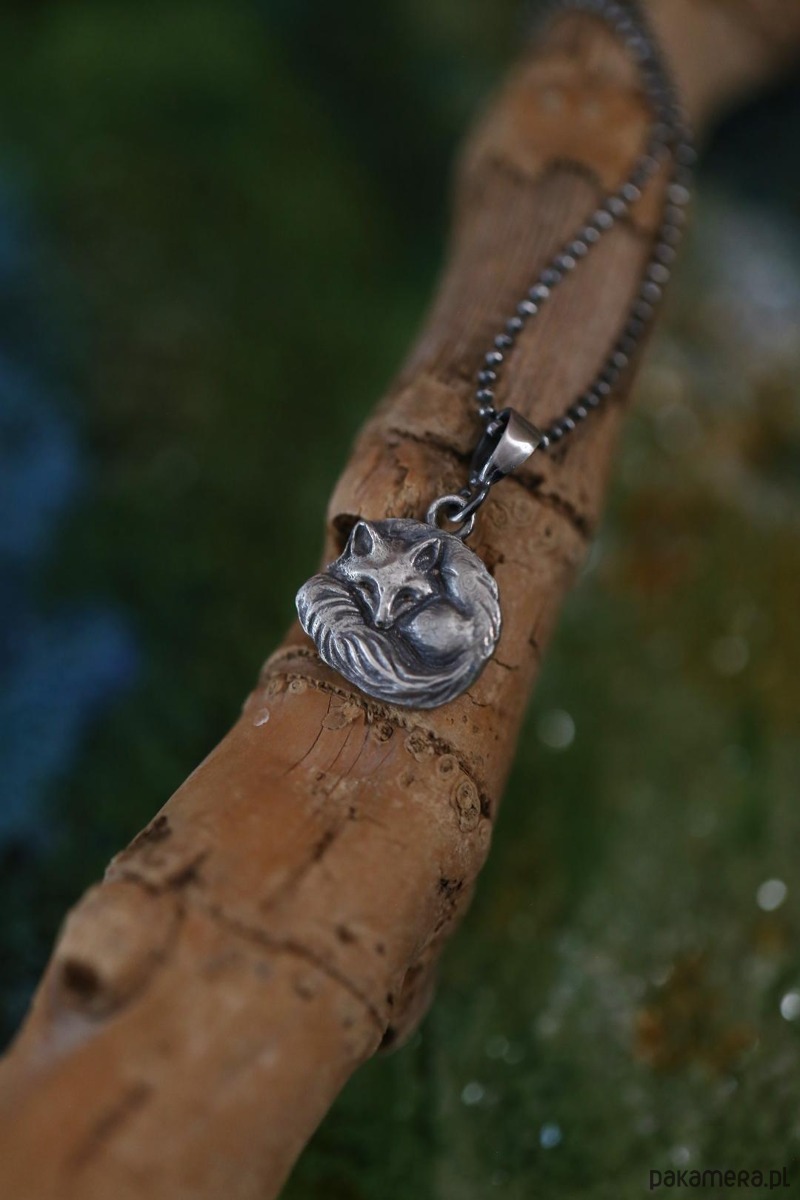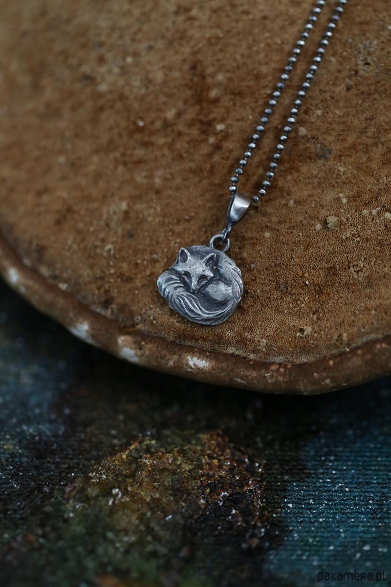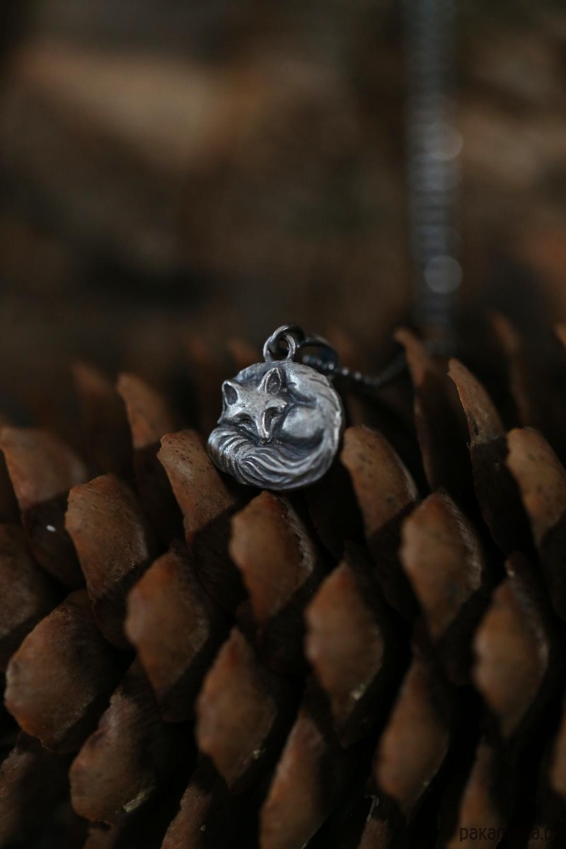 Powierzchnię srebra pokryłam oksydą, która nadała mu stalowo szary odcień i wydobyła strukturę sierści. Zawieszkę umieściłam na łańcuszku z regulacją.