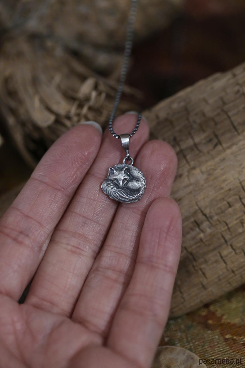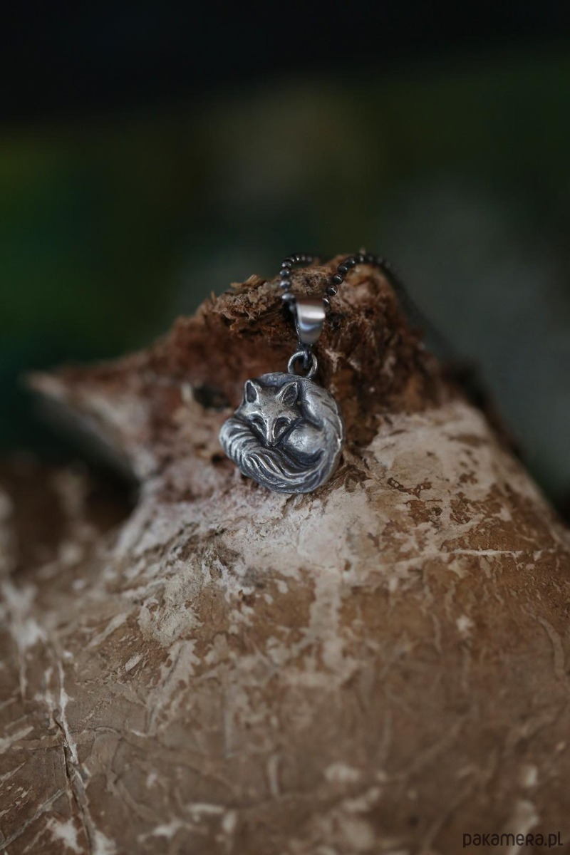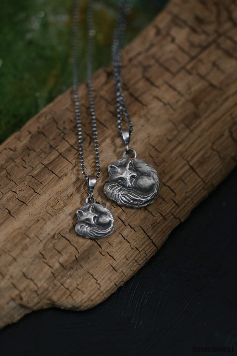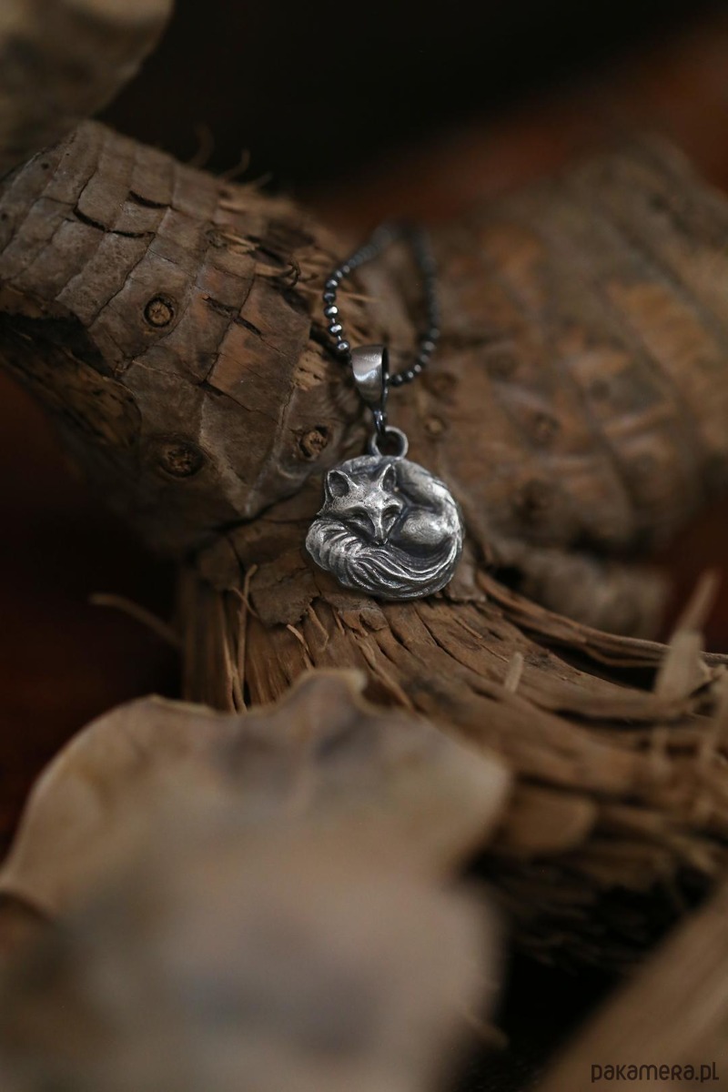 Powierzchnię srebra pokryłam oksydą, która nadała mu stalowo szary odcień i wydobyła strukturę sierści. Zawieszkę umieściłam na łańcuszku z regulacją.
