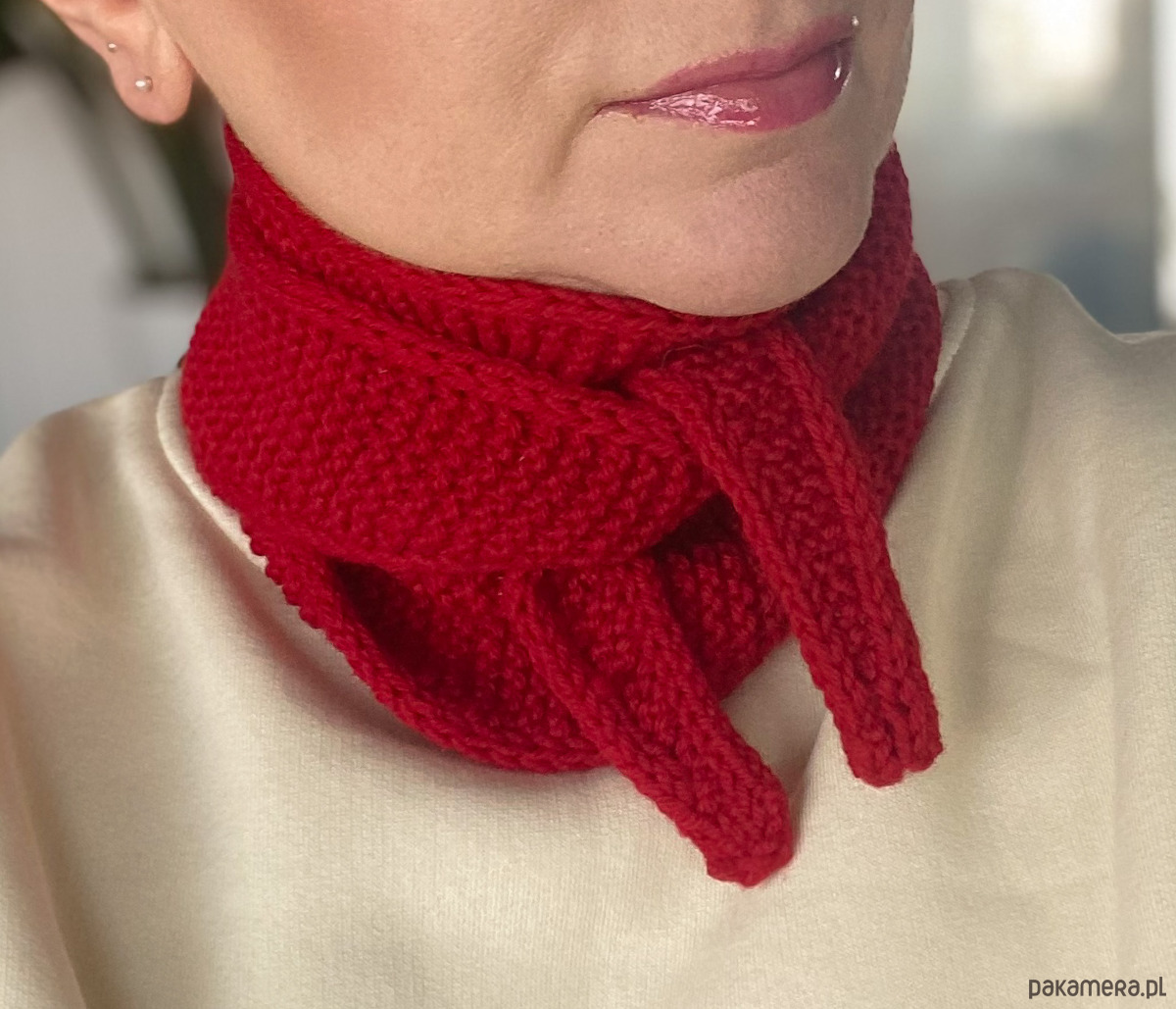 Mini szalik z wełny merynosa w kolorze czerwonym.