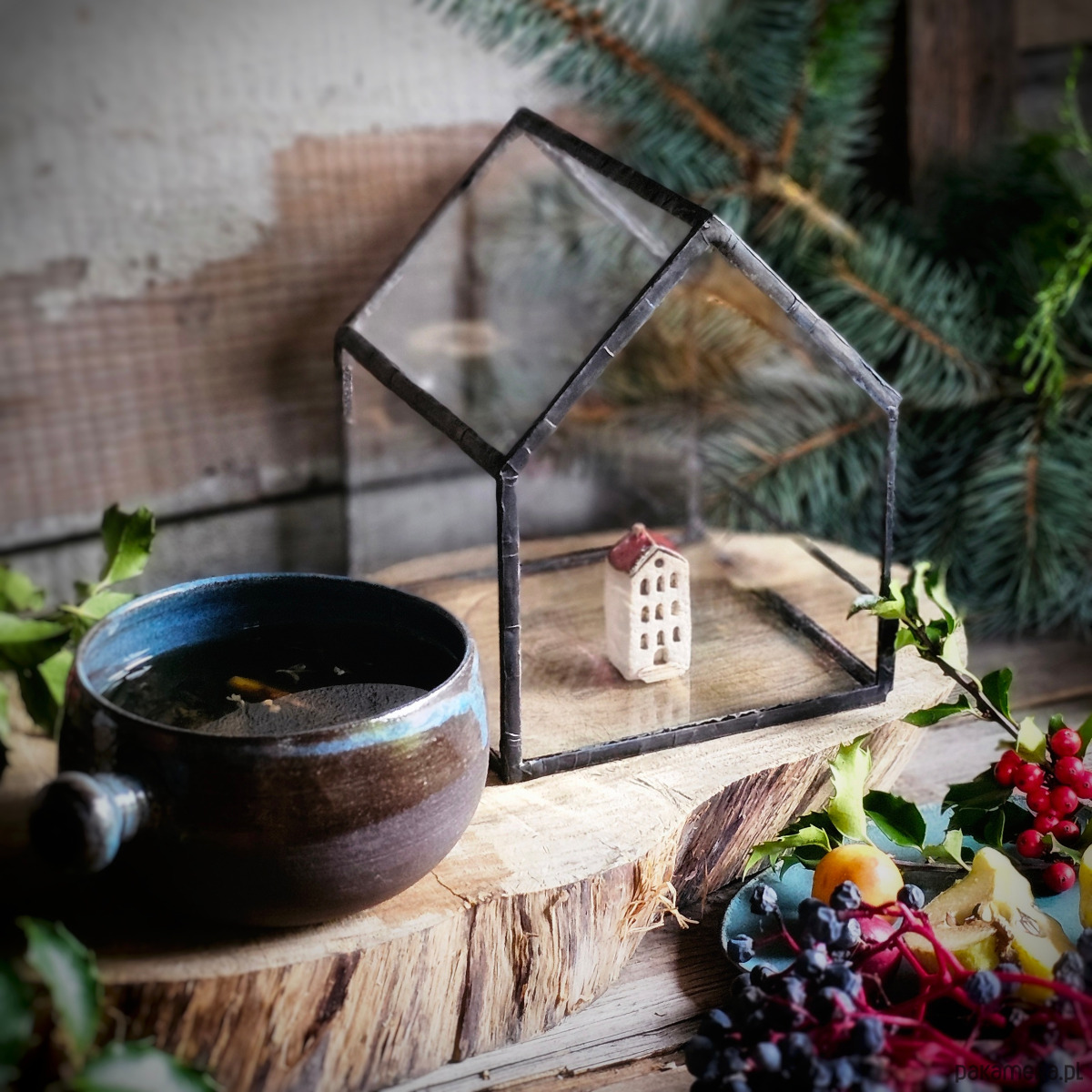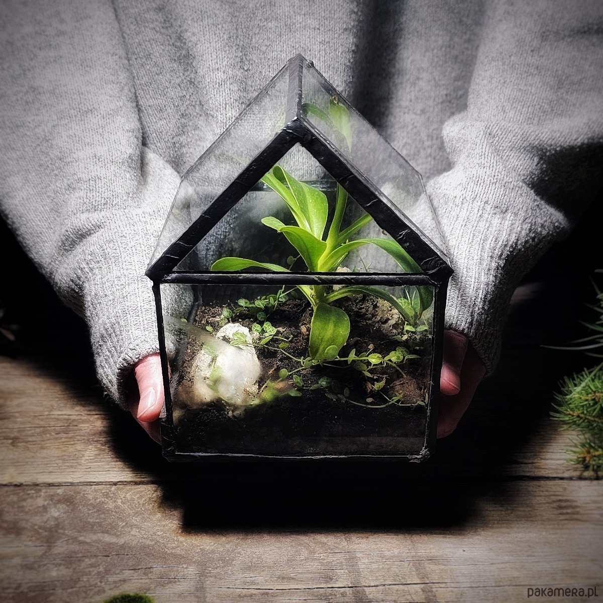 Mini szklarnia Dom Otwarty - szklana dekoracja handmade