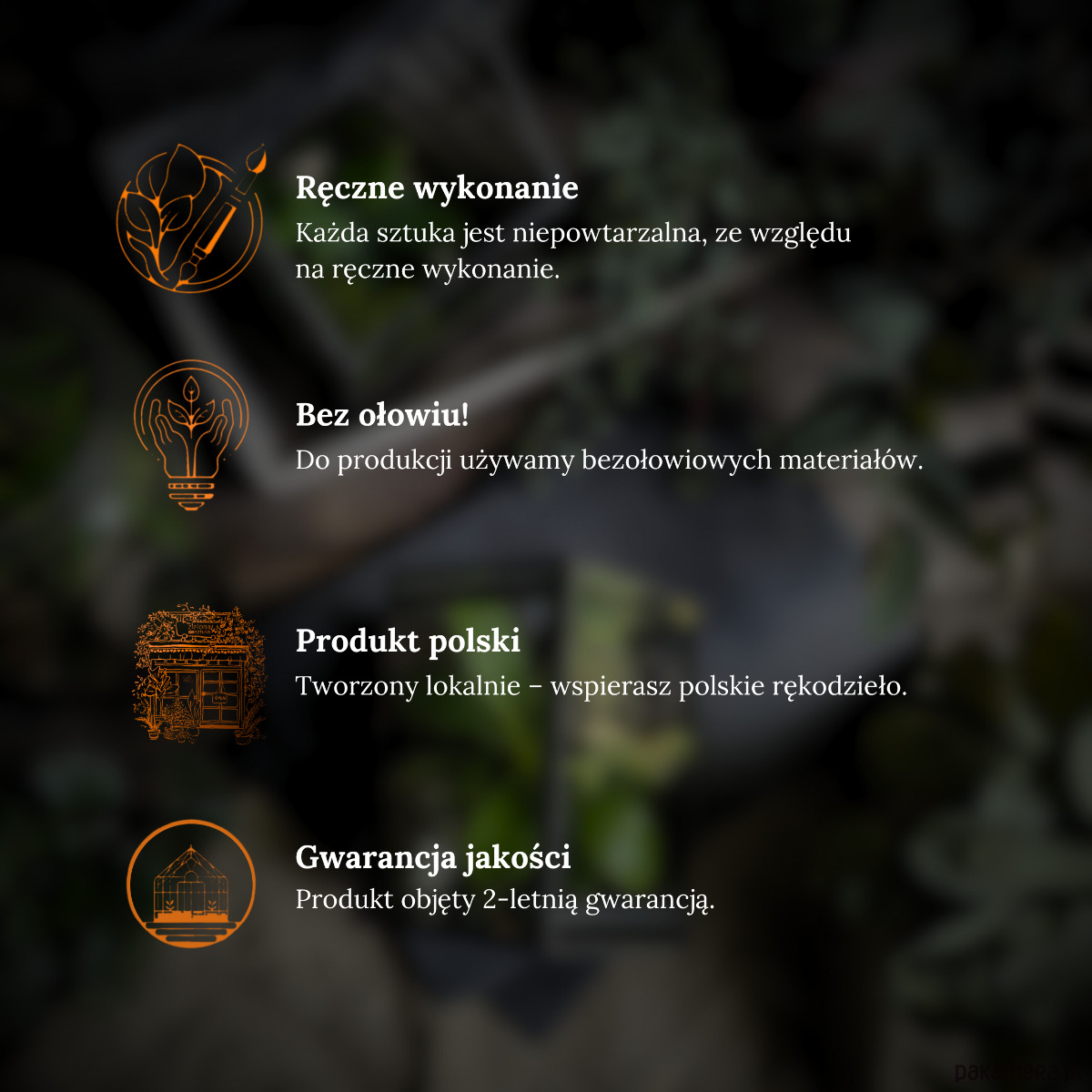 ➤ Każda szklarnia jest wykonana z dużą starannością. Szkło łączone z metalem zapewnia trwałość i wyjątkowy wygląd. Ręczne wykonanie sprawia, że każda sztuka jest unikalna i mogą się nieco różnić od siebie.
