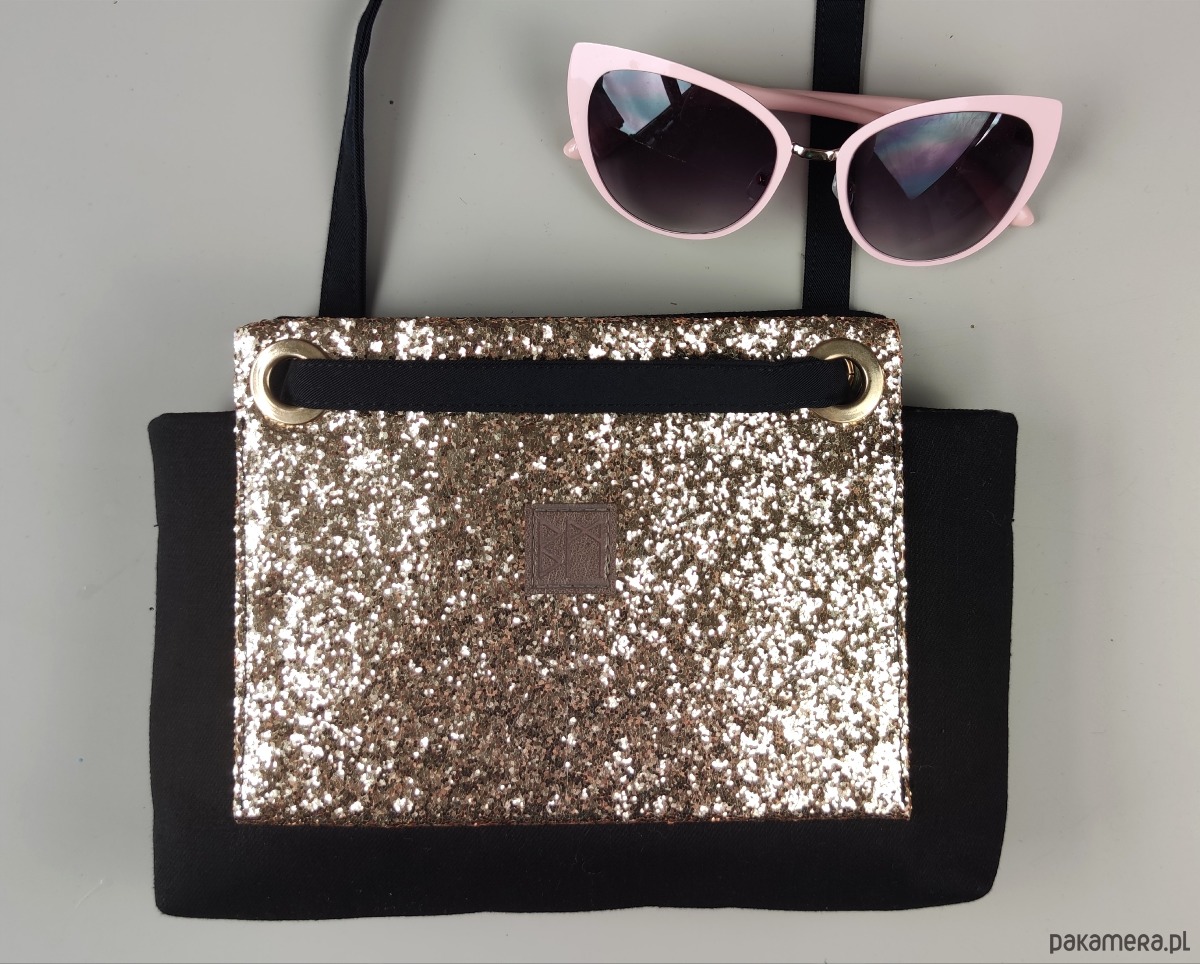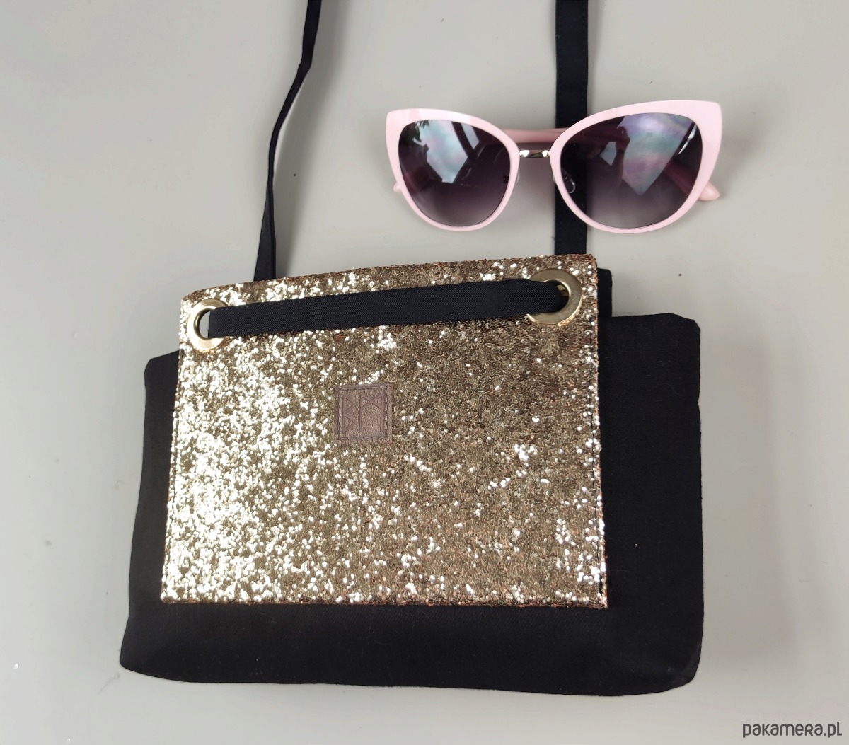 Mini torebka na długim pasku do noszenia na ramię lub na na skos. Zamykana na suwak. Posiada główną komorę i dwie mniejsze kieszonki zewnetrzne. Długość paska można dowolnie regulować przesuwając supeł.