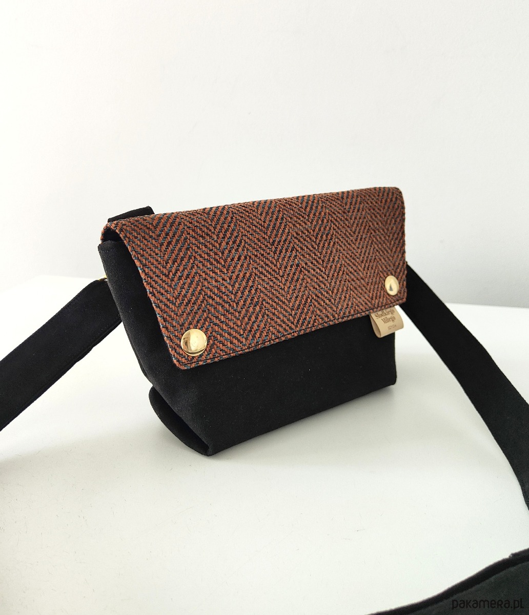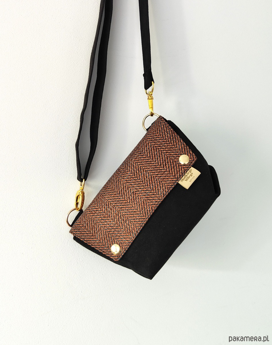 Mini Torebka L E A Orange&Black- mała torebka welur/nubuk