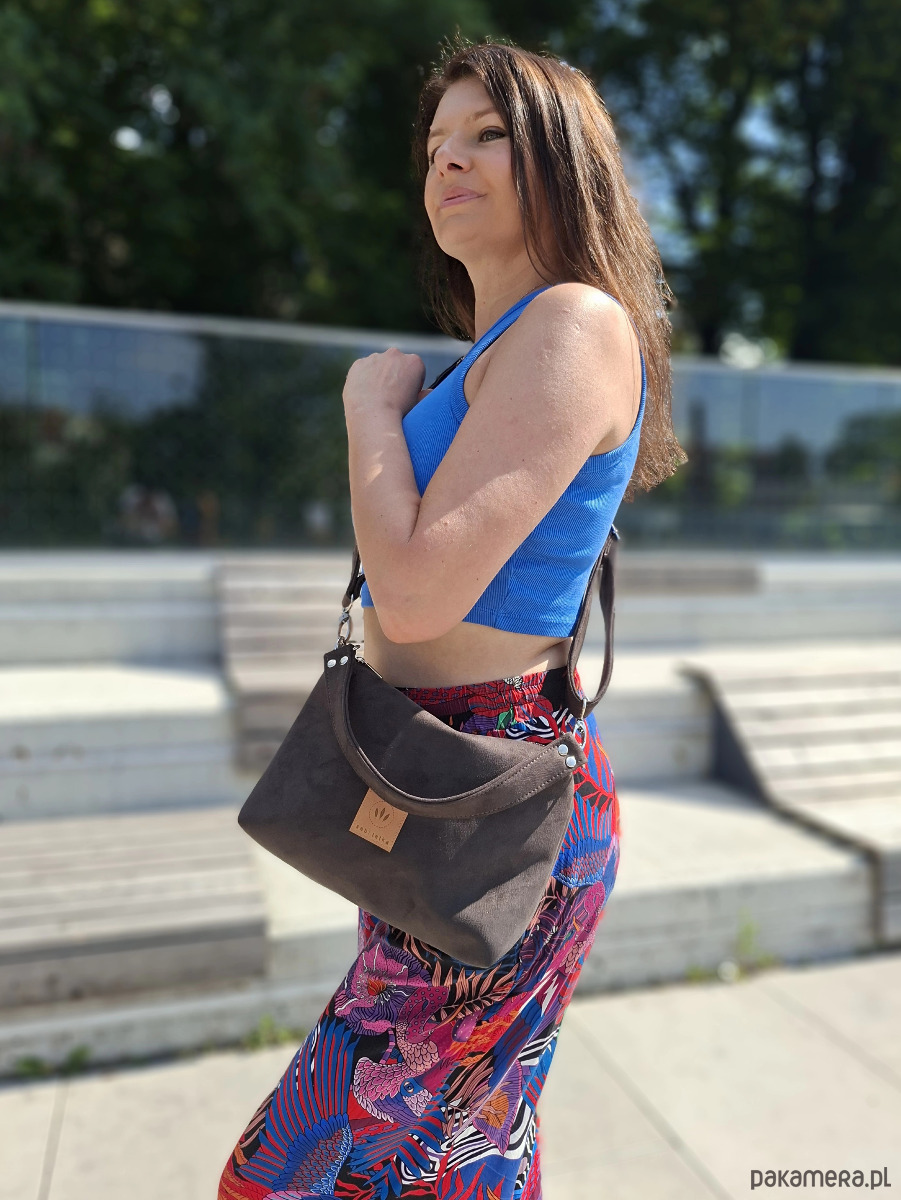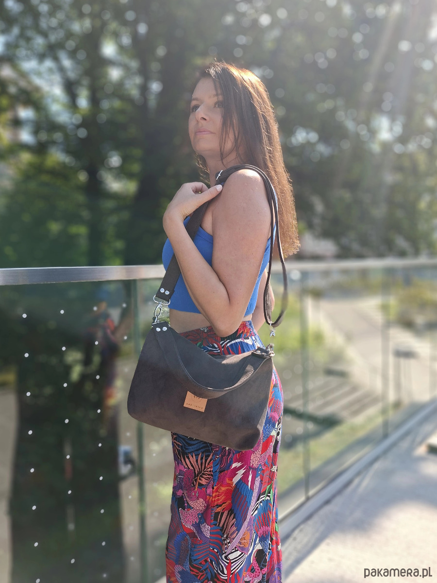 Frida mini to mała ale bardzo pojemna torebka z wodoodpornego nubuku w kolorze czekoladowym.