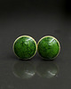 Ceramiczne okrągłe kolczyki w formie sztyftów, ręcznie wykonane z delikatnej gliny kamionkowej jednostronnie szkliwione intensywnym zielonym szkliwem z efektem plamek i pięknym połyskiem, na antyalergicznych sztyftach w kolorze srebrnym. Średnica ok. 11mm. Polecam
