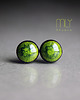 Ceramiczne okrągłe kolczyki w formie sztyftów, ręcznie wykonane z delikatnej gliny kamionkowej jednostronnie szkliwione intensywnym zielonym szkliwem z efektem plamek i pięknym połyskiem, na antyalergicznych sztyftach w kolorze srebrnym. Średnica ok. 6mm. Polecam