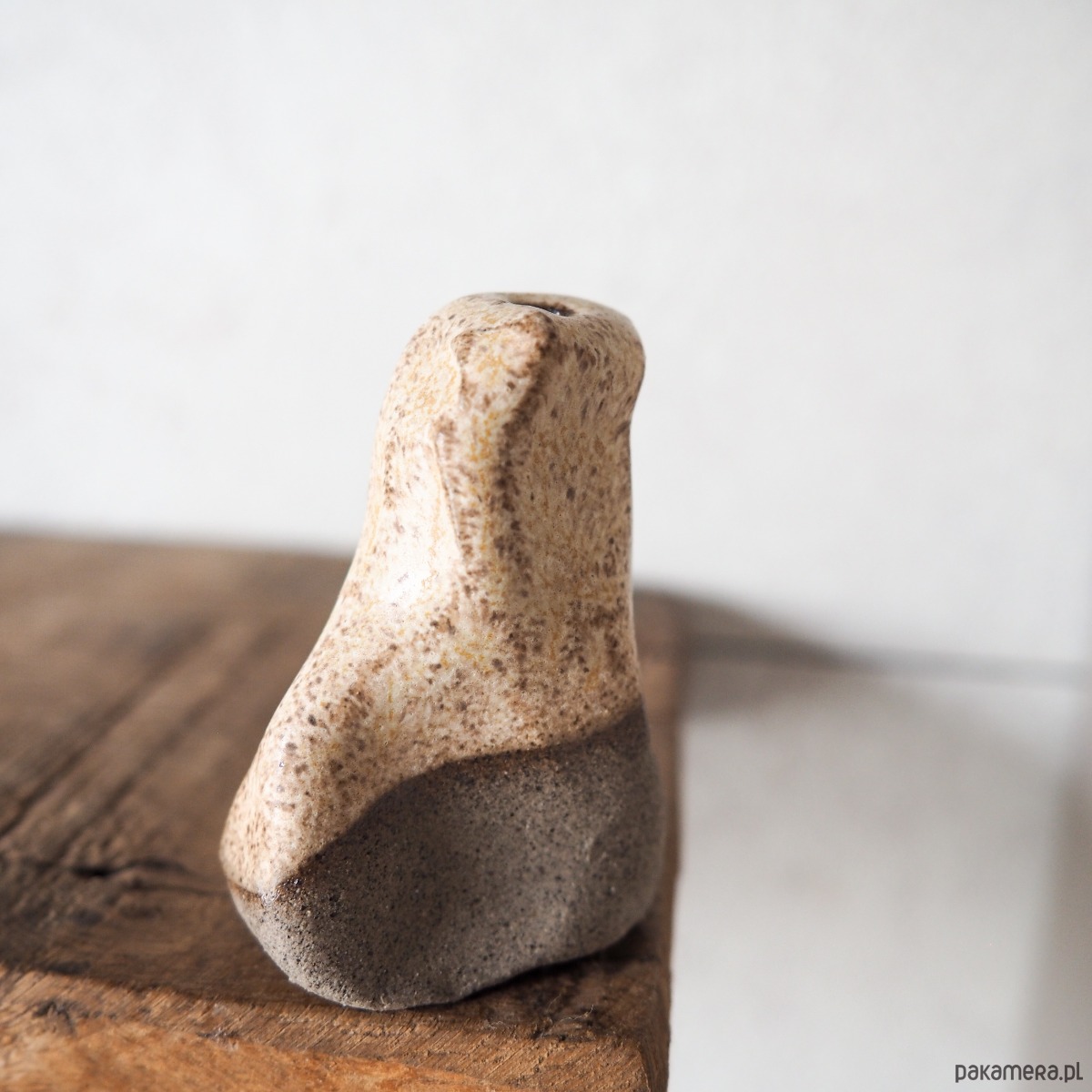 Niewielki, ręcznie tworzony wazonik o organicznej formie, która sprawia, że każdy egzemplarz ma swój indywidualny charakter. Pokryty szkliwem w naturalnych odcieniach beżu, przywodzi na myśl spokojną, ziemistą paletę kolorów.