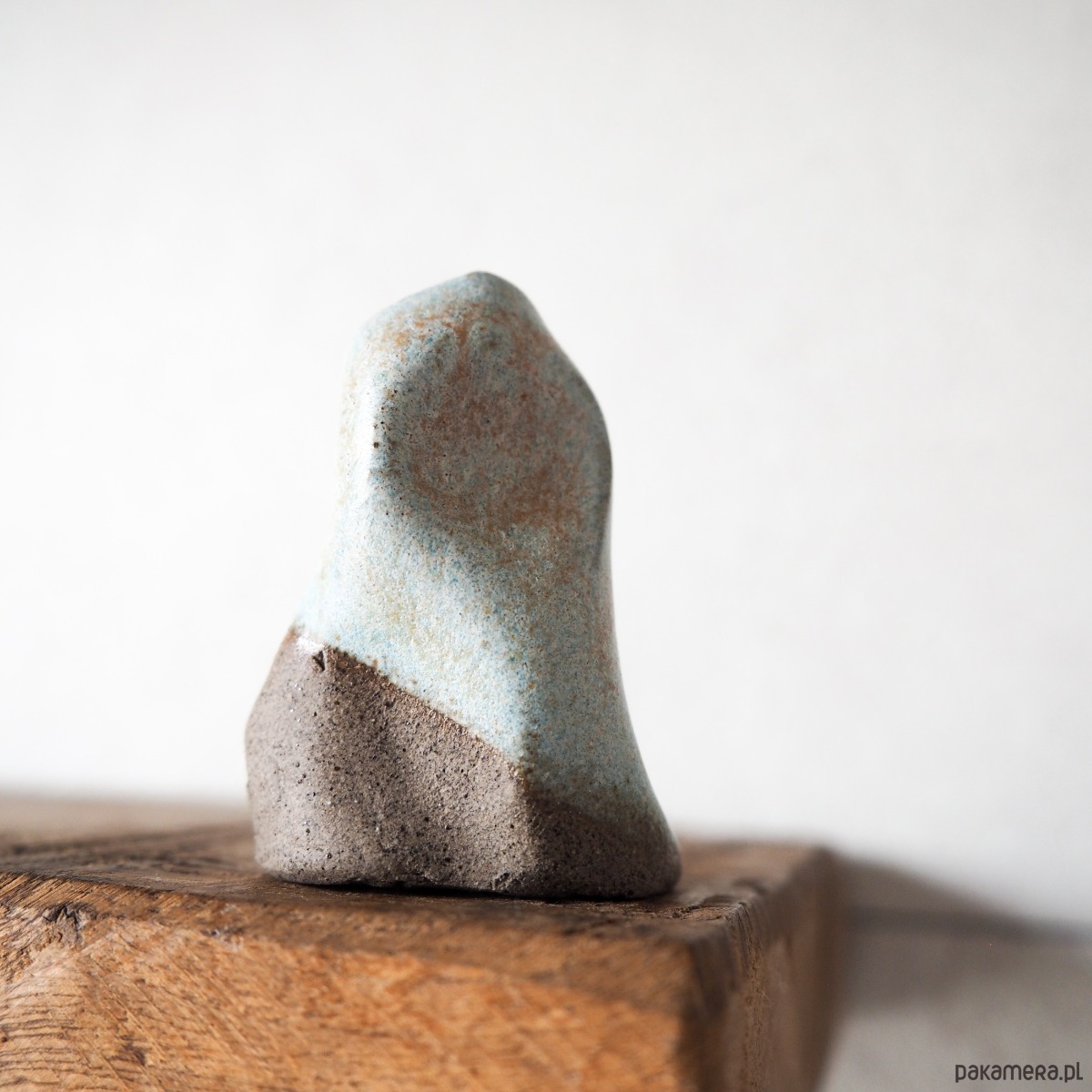 Niewielki, ręcznie tworzony wazonik o organicznej formie, która sprawia, że każdy egzemplarz ma swój indywidualny charakter. Pokryty szkliwem w naturalnych odcieniach błękitu i beżu, przywodzi na myśl spokojną, naturalną paletę kolorów.