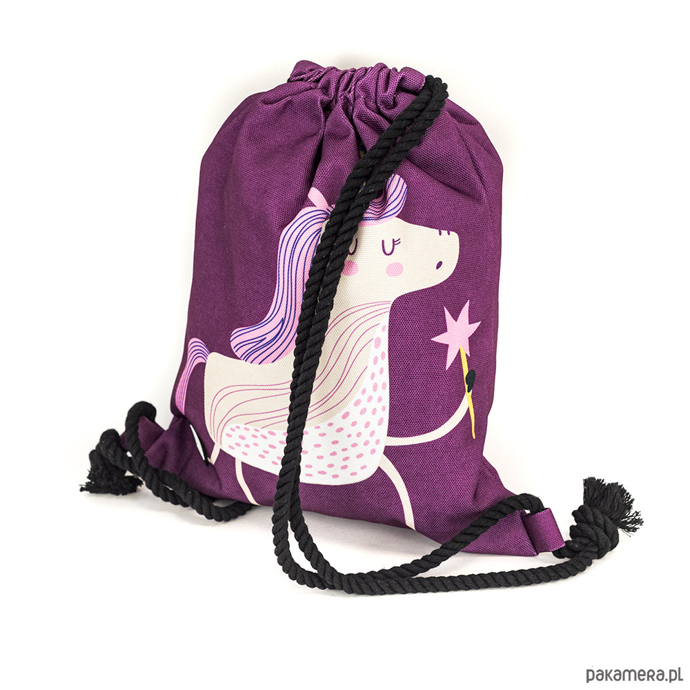 Dziecięcy worko plecak z jednorożcem z magiczną różdżką.