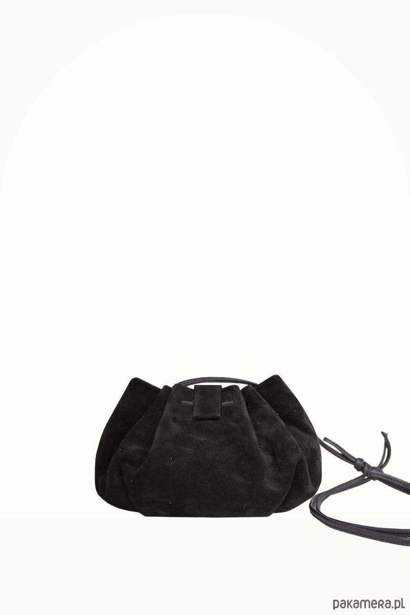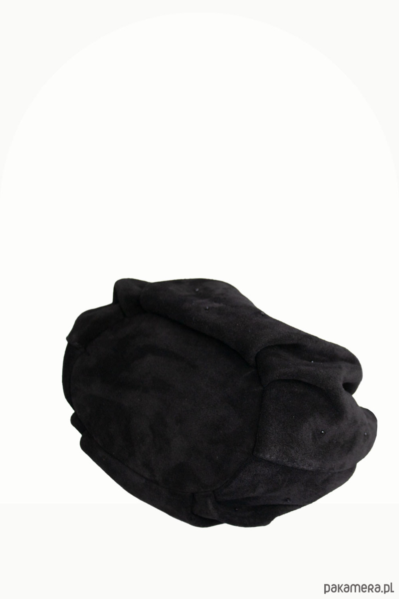 Mini worek "Retro" czarny zamsz wyszywany czarnym fasetowanym spinelem