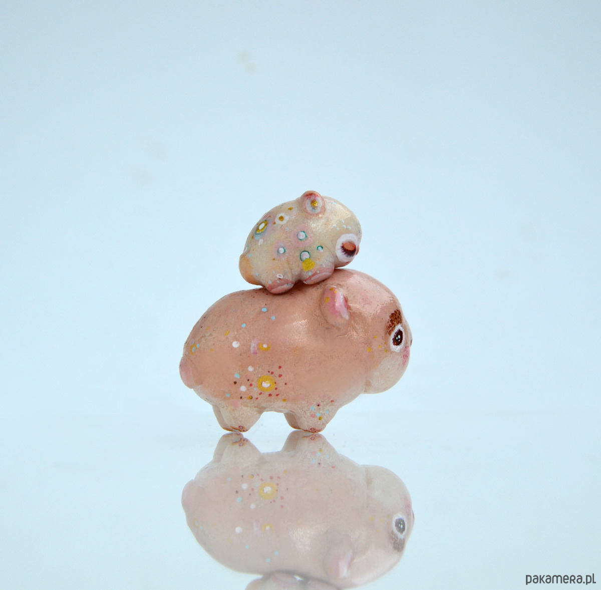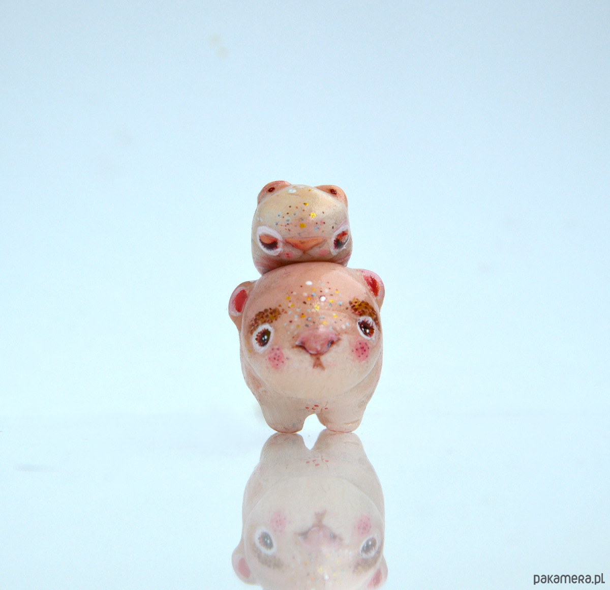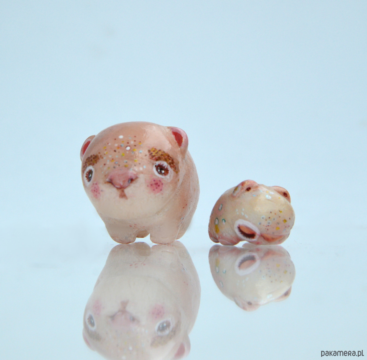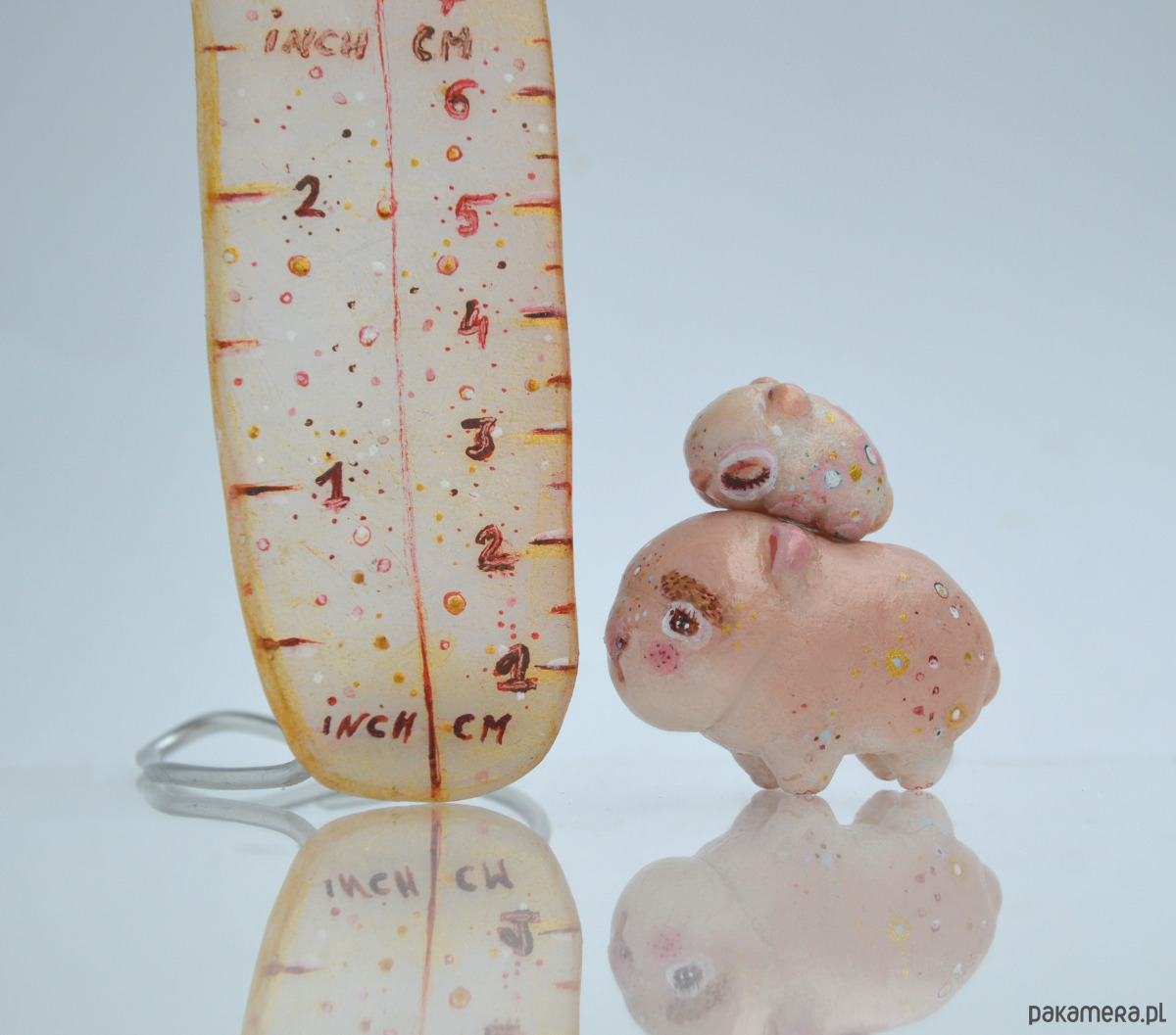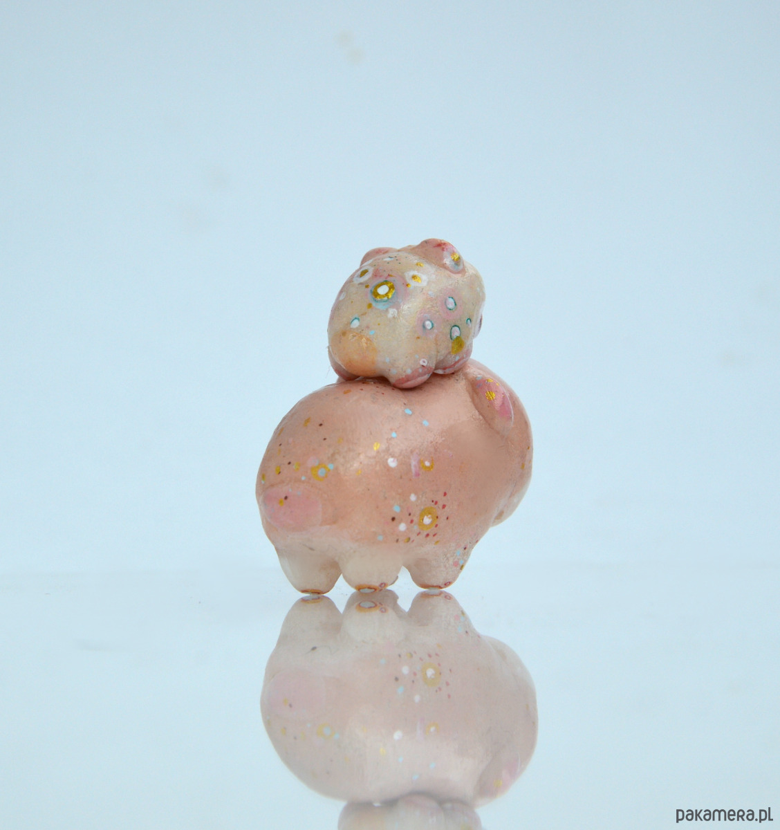 Figurka wykonana ręcznie z glinki polimerowej, malowana farbami akrylowymi oraz tuszem, następnie pokryta lakierem poliuretanowym.