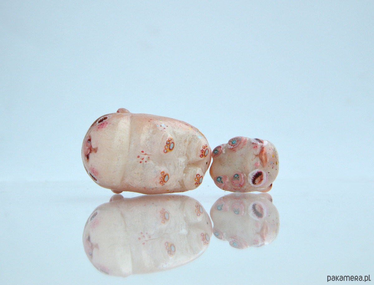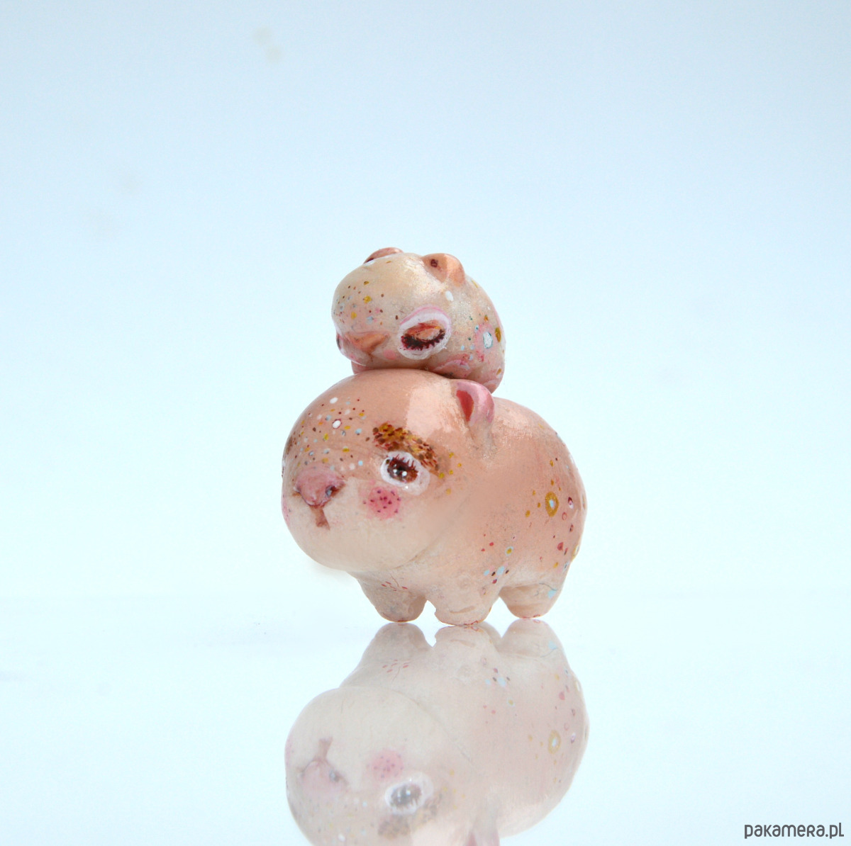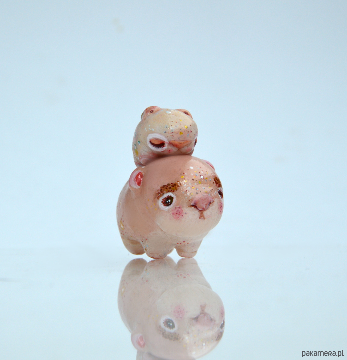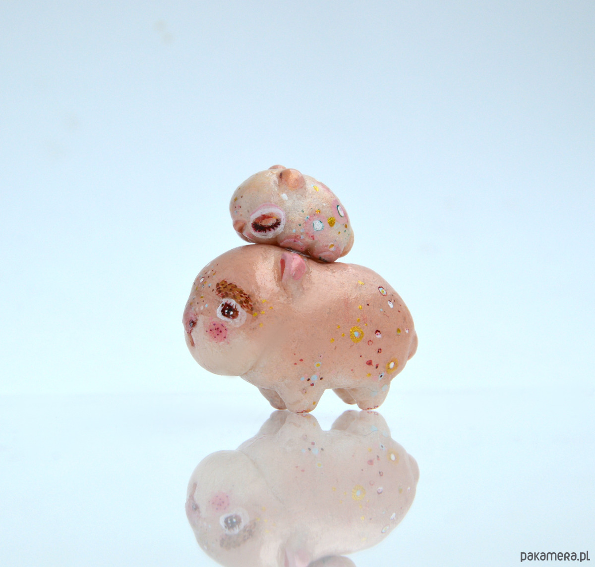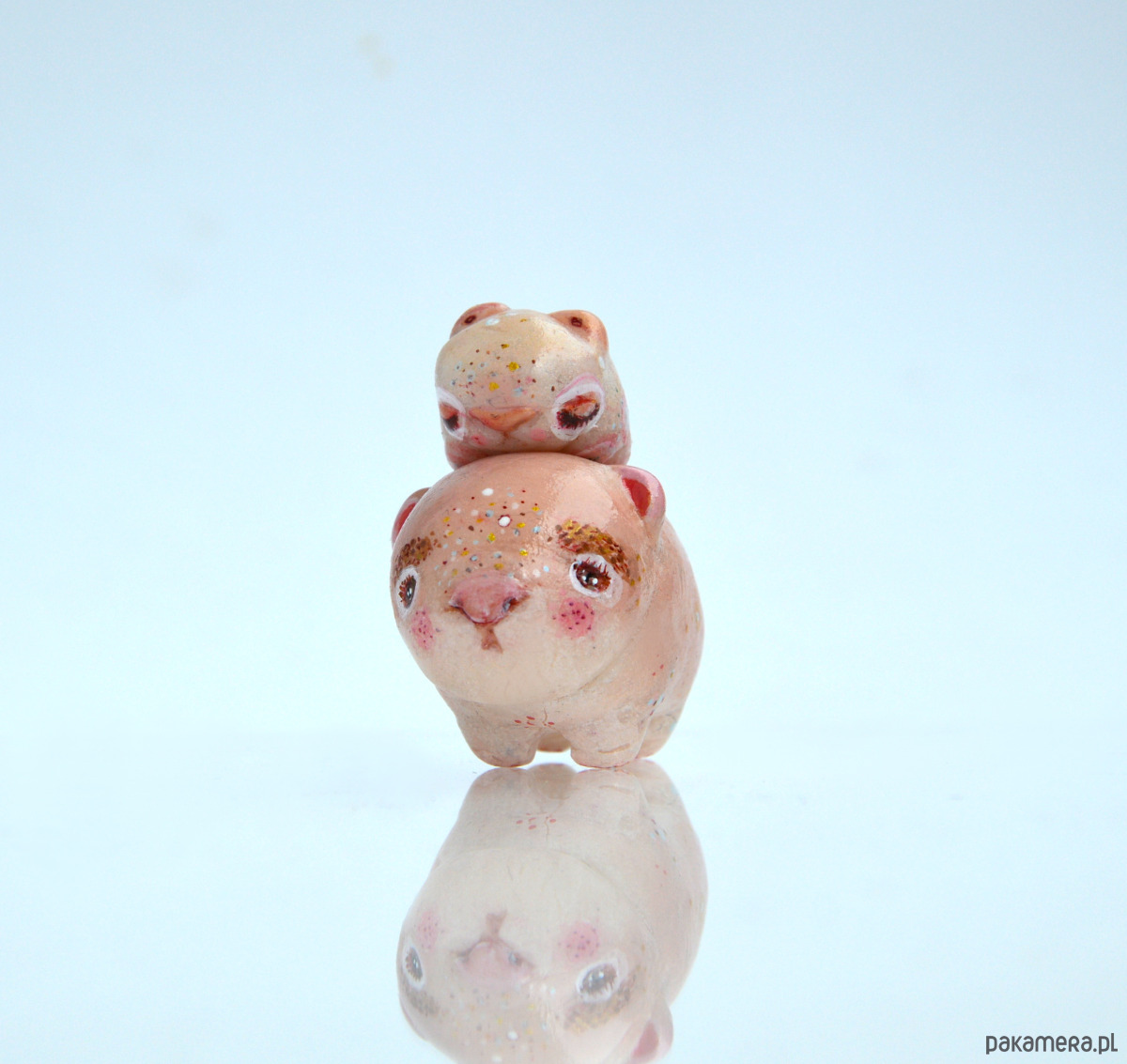 Figurka wykonana ręcznie z glinki polimerowej, malowana farbami akrylowymi oraz tuszem, następnie pokryta lakierem poliuretanowym.