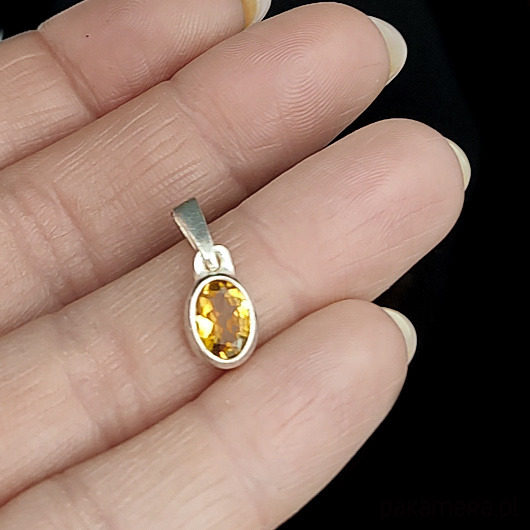 Delikatna, subtelna zawieszka z cytrynem oprawionym w srebro próby 925. Wymiary 9 x 7 mm, długość z krawatką 18 mm, waga 1,1 g. Wisiorek zostanie zapakowany w ozdobne pudełeczko.