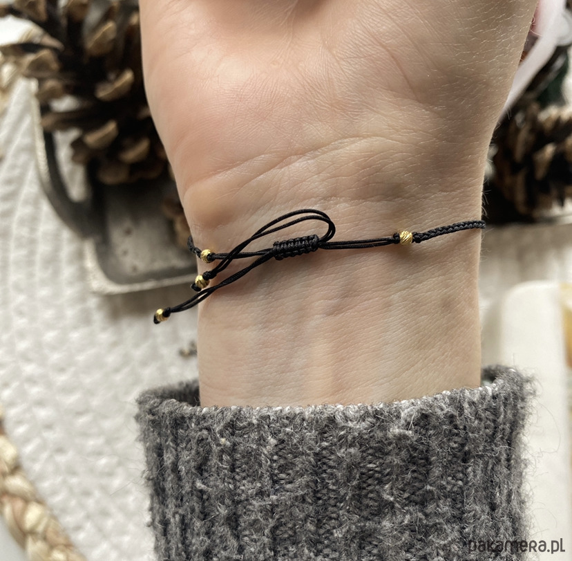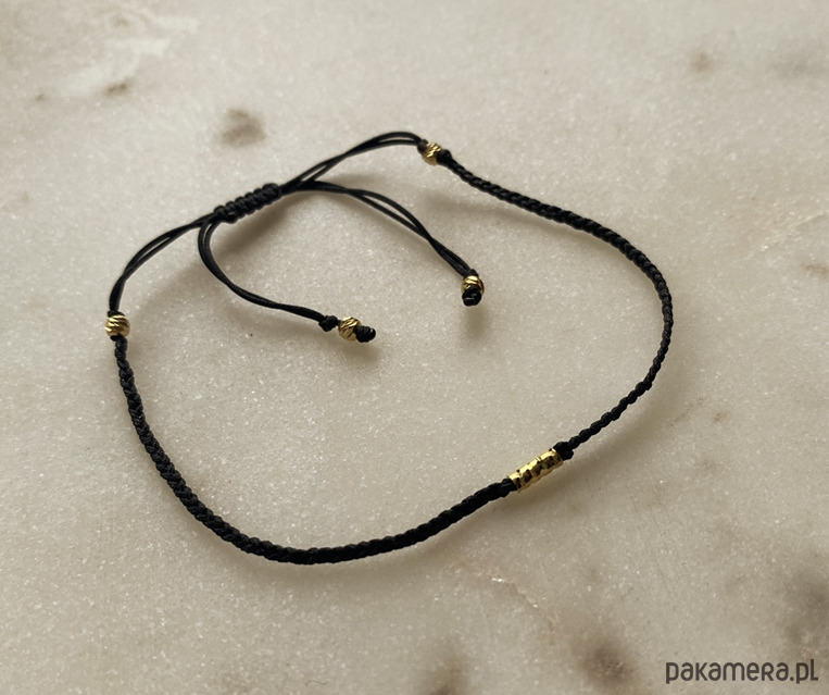 Minimalistyczna bransoletka na czarnym, zaplecionym sznureczku.