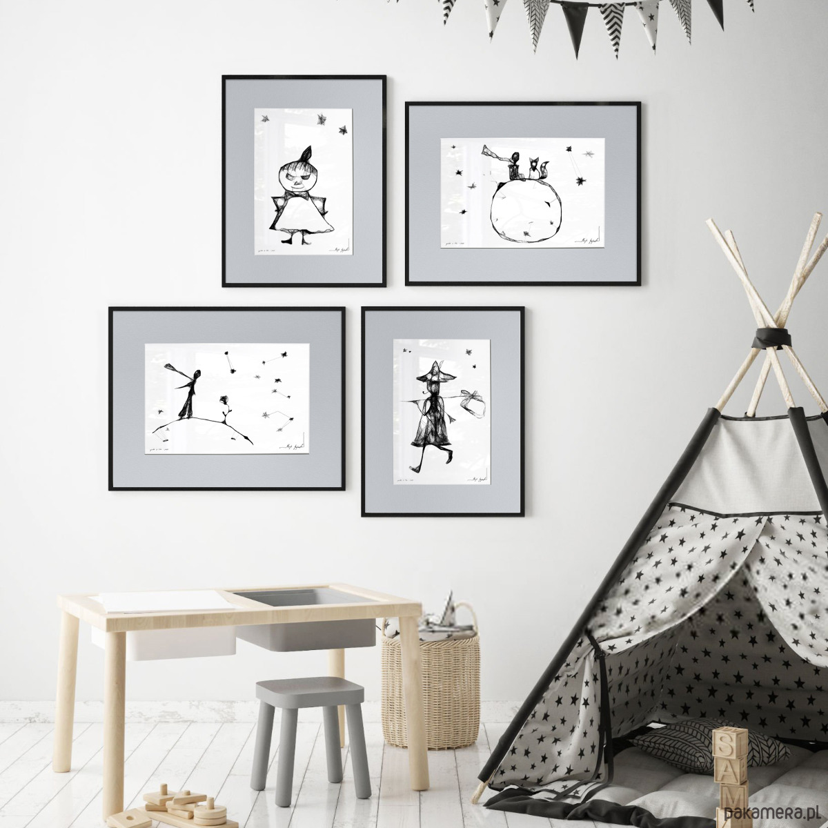 Autorska grafika wykonana techniką mieszaną (giclée, rysunek isografem) na białym, matowym o lekko fakturowanej powierzchni, graficznym papierze Canson 250g. Unikalna kreska wygląda bardzo efektownie, zaś czarno-białe wykończenia wnętrz idealnie wpisują się puste w ściany nowoczesnych, minimalistycznych czy loftowych powierzchni.