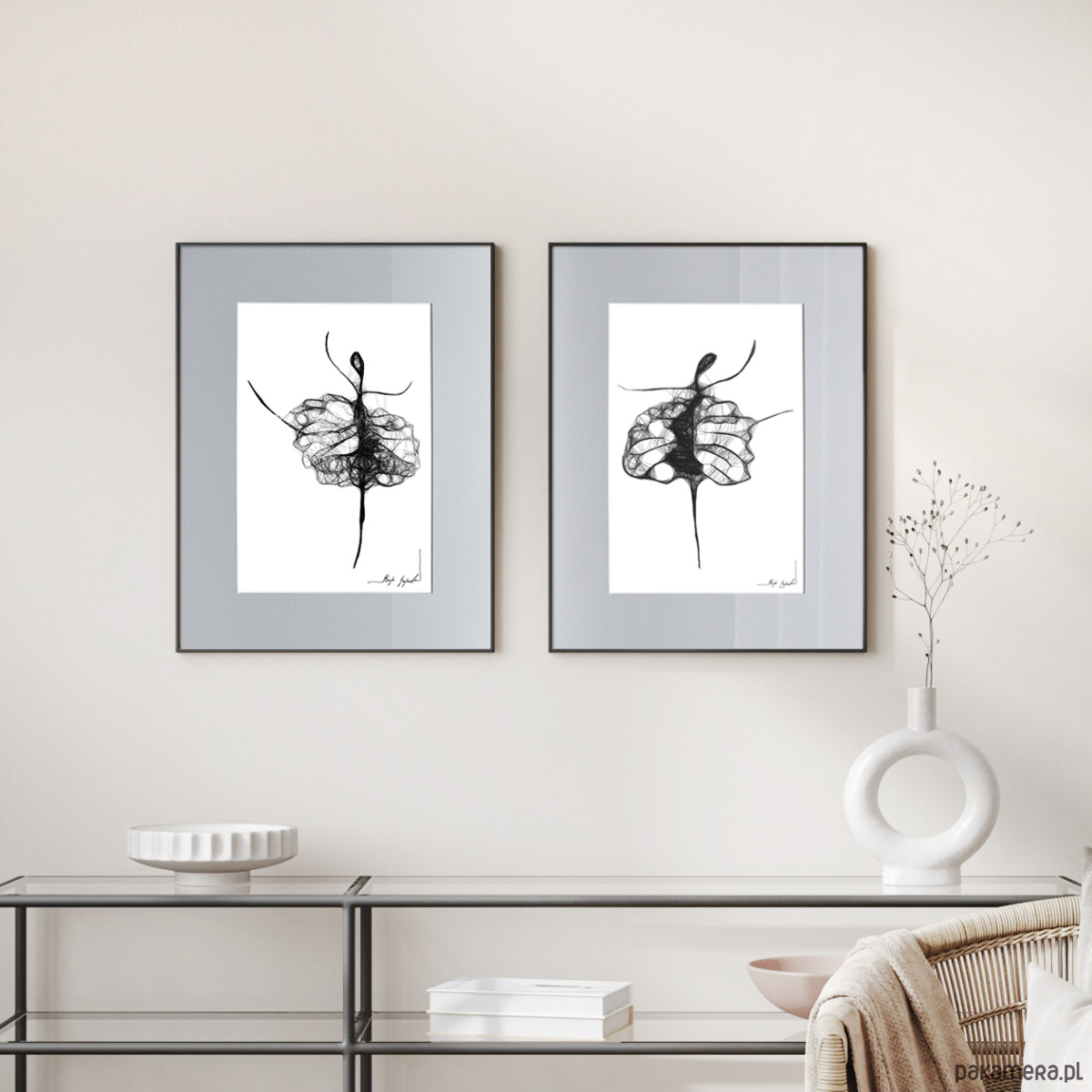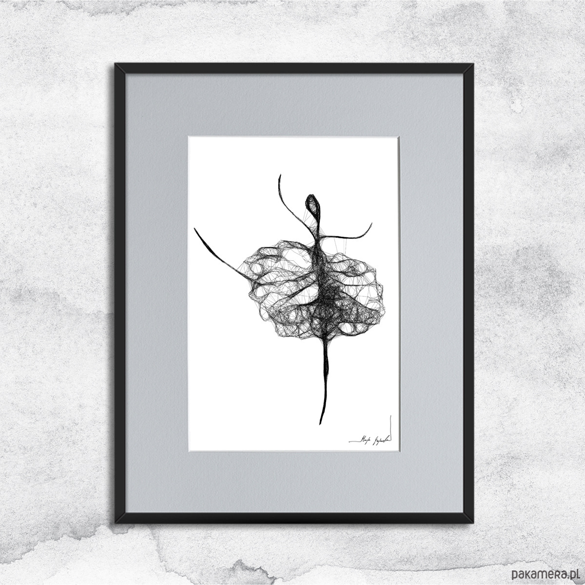 Autorska grafika wykonana techniką mieszaną (giclée rysunek isografem+akwarela) na białym, matowym o lekko fakturowanej powierzchni, graficznym papierze Canson 250g. Unikalna kreska wygląda bardzo efektownie, zaś czarno-białe wykończenia wnętrz idealnie wpisują się puste w ściany nowoczesnych, minimalistycznych czy loftowych powierzchni.