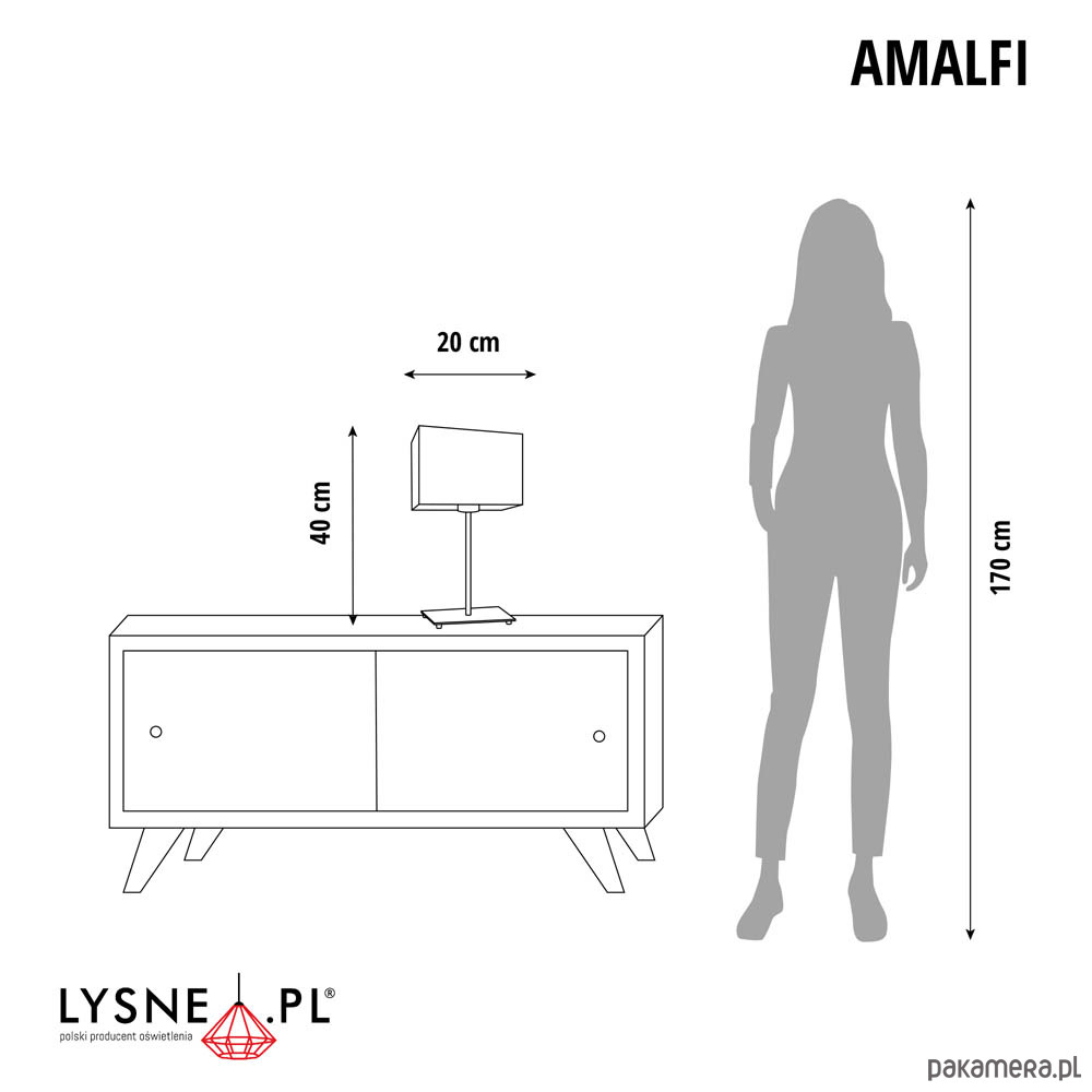 Wymiary lampy (stelaż + abażur): wysokość - 40 cm, szerokość - 20 cm