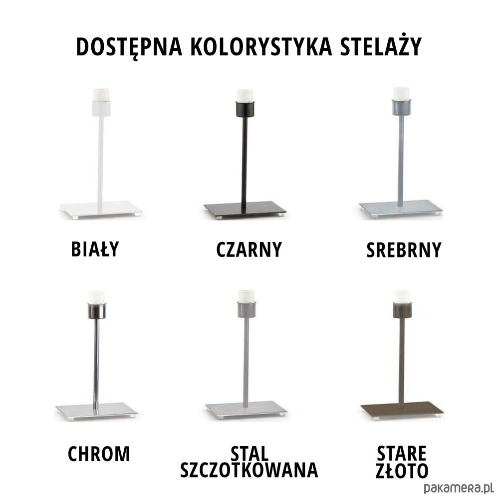 Po dokonaniu zakupu prosimy o przesłanie w wiadomości do sprzedającego informacji jaki kolor abażuru oraz stelaża Państwo wybierają.