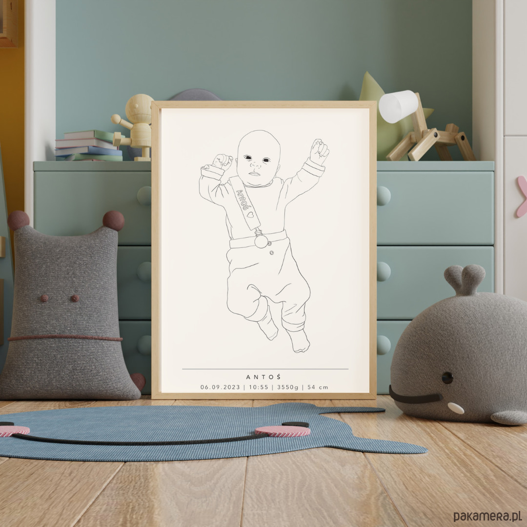 Minimalistyczna metryczka dla maluszka do samodzielnego wydruku to doskonała pamiątka i ozdoba dziecięcego pokoju.